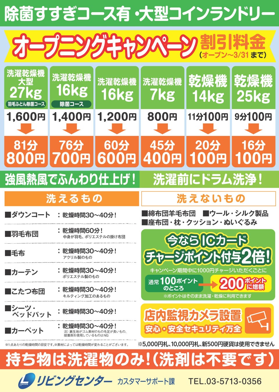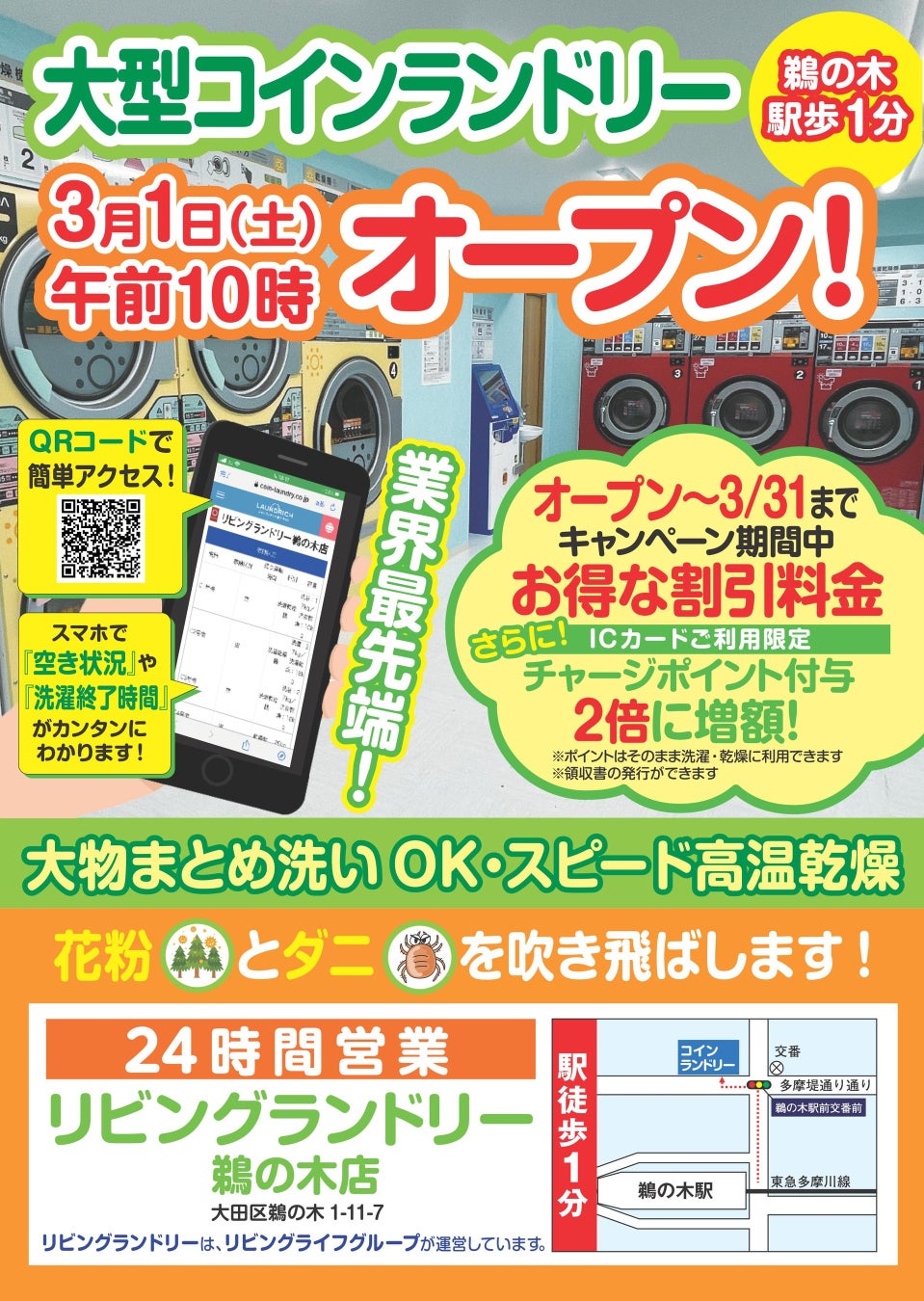 リビングライフホールディングスで賃貸管理を行う株式会社リビングセンター(本社:東京都大田区、代表取締役:炭谷久雄)は、コインランドリー「リビングランドリー鵜の木店」(所在地:東京都大田区鵜の木1-11-7)を3/1よりオープンいたします。