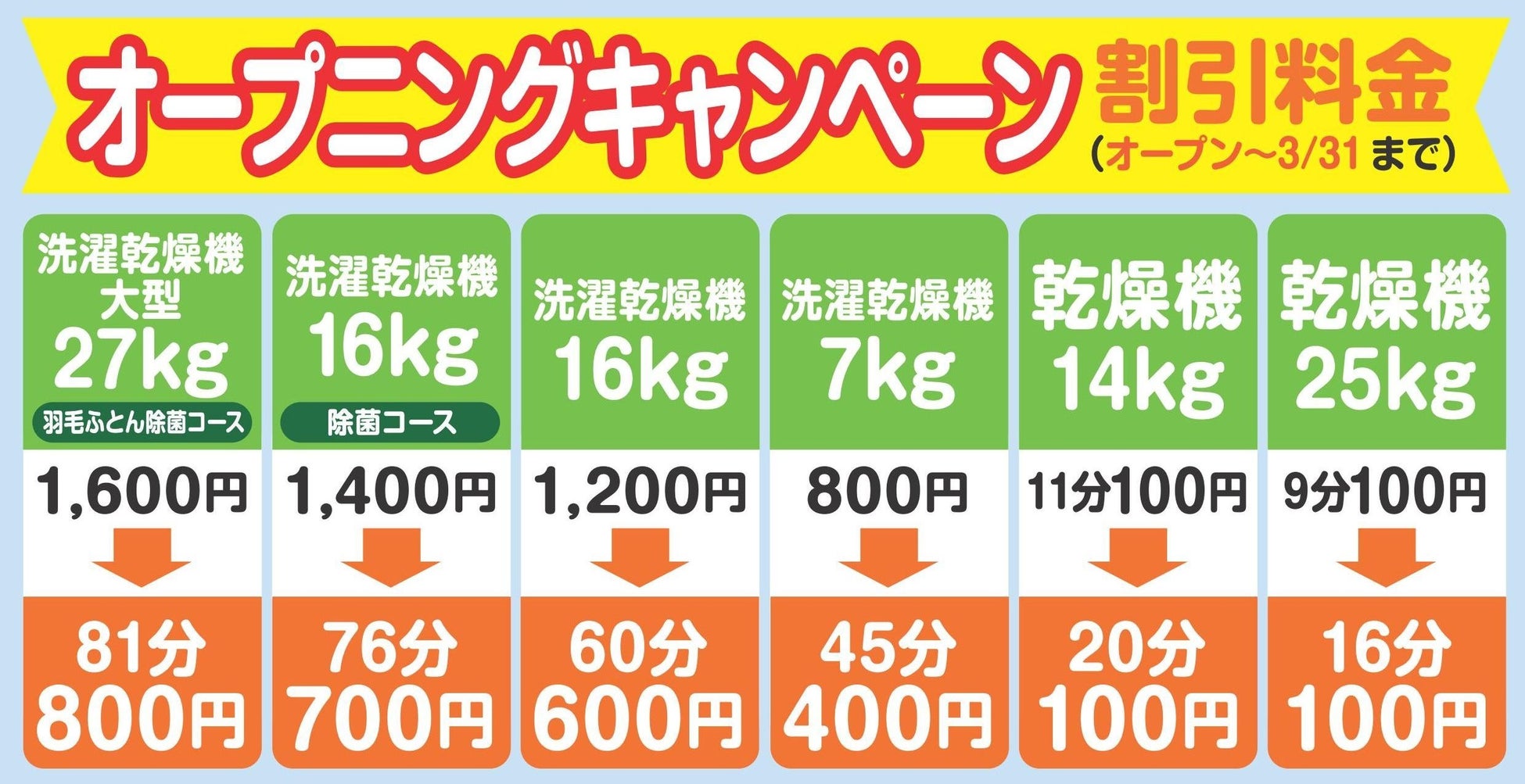 オープン~3月31日までお得な割引料金でご利用頂けます。