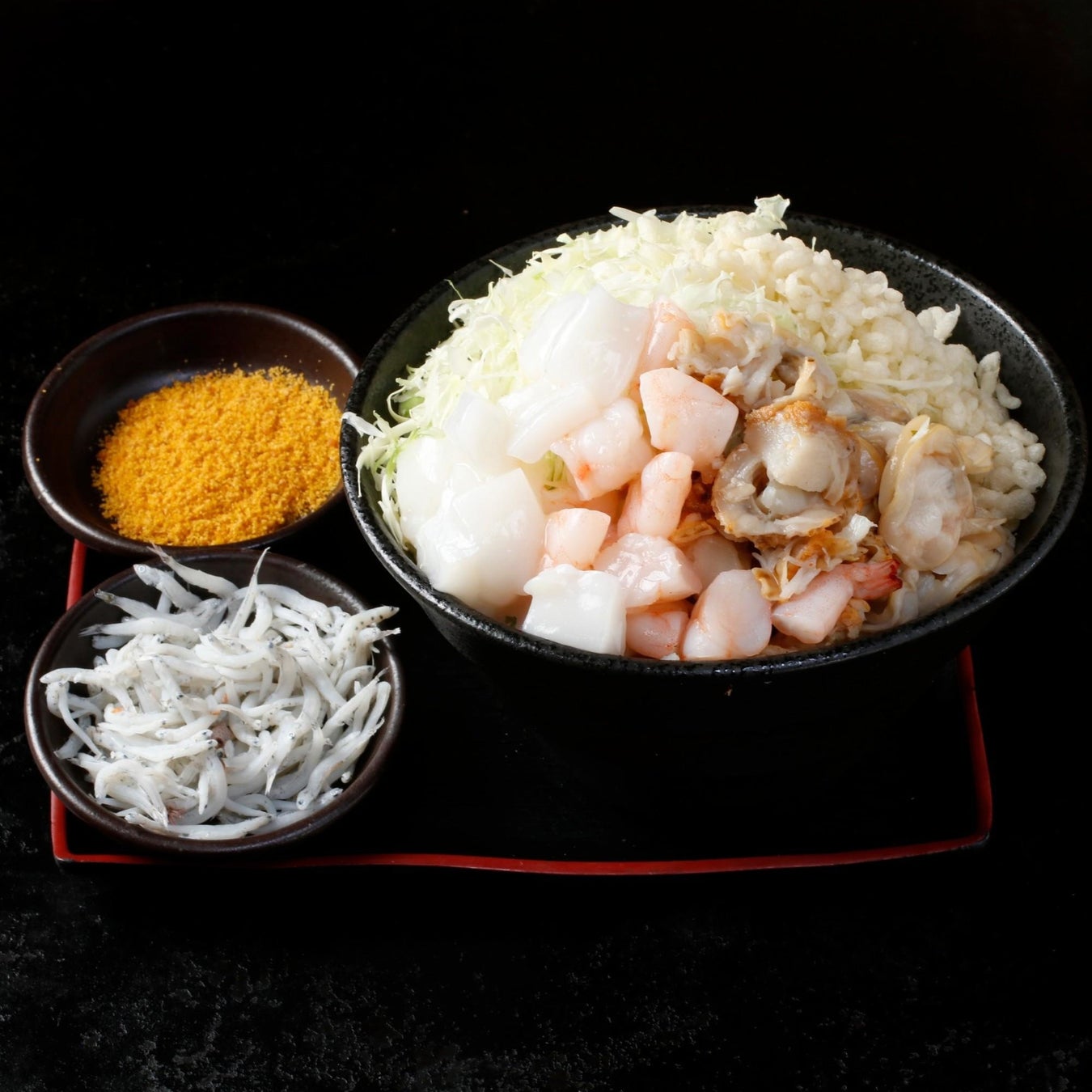 厳選した鰹節と北海道産羅臼昆布を使用し、毎日店舗でひく一番出汁を全もんじゃに採用。