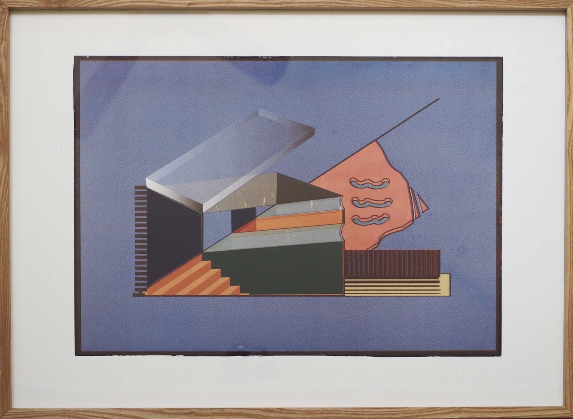 使えるインクの種類が多いことが特長のシルクスクリーンにあって、使う色はCMYK(青/赤/黄/黒)のみで一度刷り。インクの粘度や刷り重ねる順番をコントロールすることで見え方や印象を変化させます。画材、技法に制限を設け、ひとつの図版を正確に量産する複製技術として発達したシルクスクリーンで一点物の絵画作品を制作する点がユニークです。