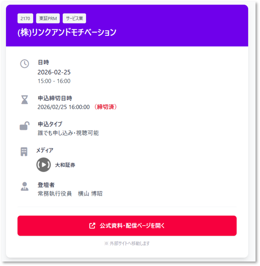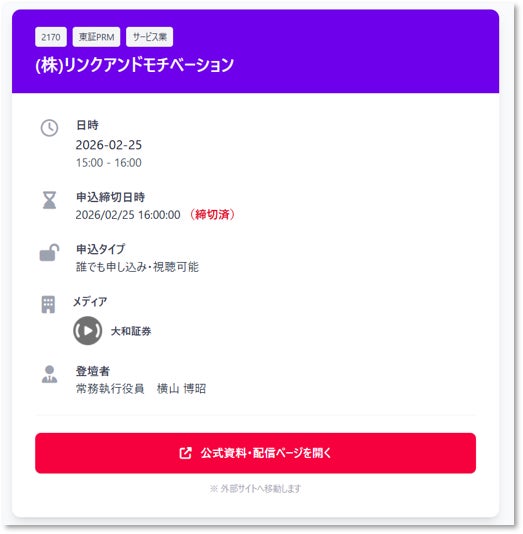 【リンクソシュール】個人投資家向け IRイベントのポータルサイト「IR Event カレンダー」の提供を開始