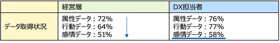 属性データ、行動データと比較し、感情データまで取得できている企業は低い。