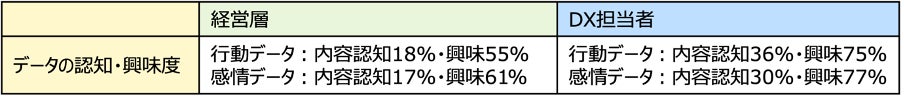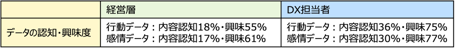 行動・感情データの認知度、興味度に関してはDX担当者のほうが高い。
