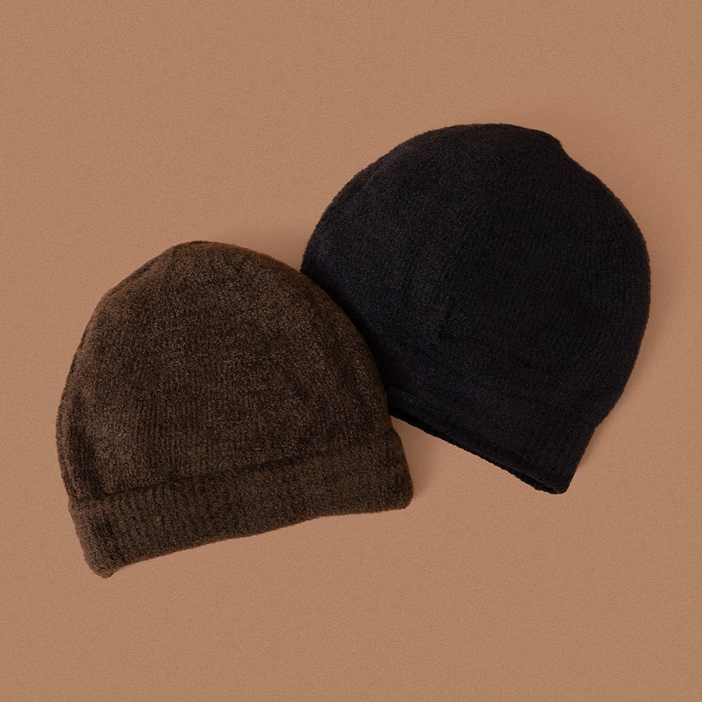 滑らかな手触りの糸を編みたてたニットキャップ。リブ編みのかぶり口を折り返せばダブルワッチとして着用でき、ポンポンの取り外しもできるので、4通りのアレンジが楽しめます。