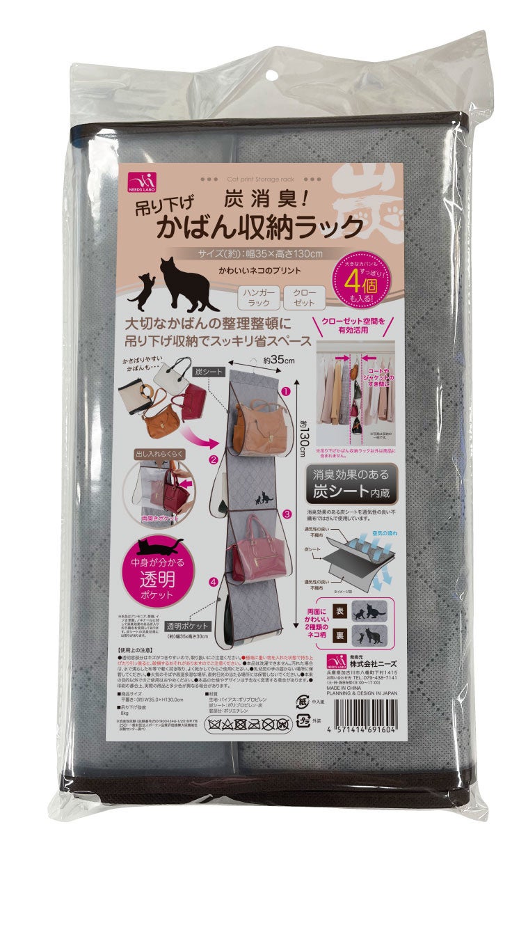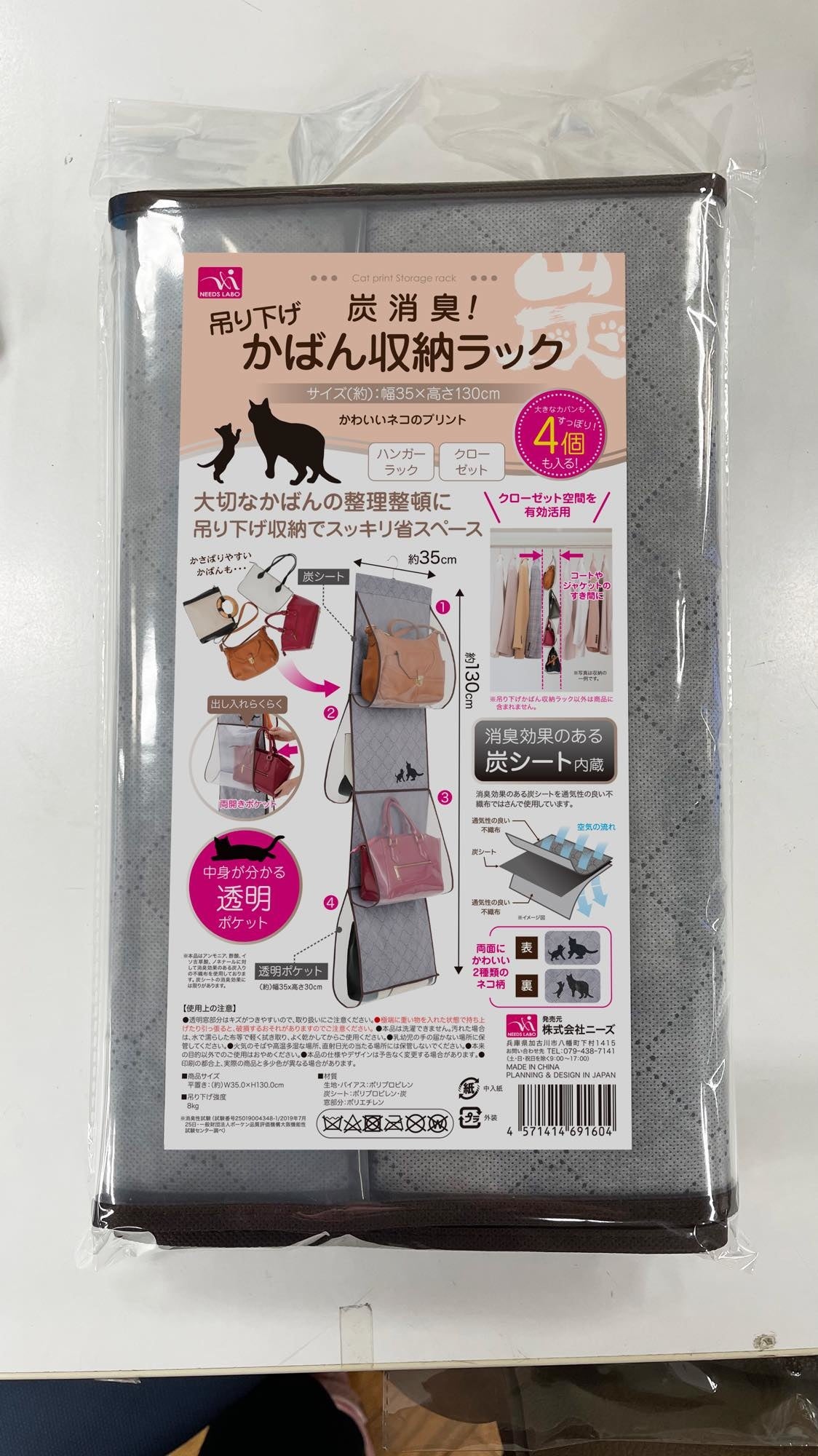 株式会社ニーズ(本社:兵庫県加古川市、代表取締役:本岡勝則)は「炭消臭 吊り下げかばん収納ラック」1,848円(税込)を4月15日より発売開始しました。
