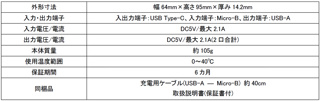 モバイル充電バッテリーの需要は外出機会の増加によって販売数量が前年比約160%(*2)と増えています。また、台風や地震などの災害による急な停電への備えとして、防災グッズの中にモバイル充電バッテリーを用意される方も増えてきました。本製品はコンパクトなサイズに加えて、2機種ともにUSB-A、Micro-B、USB Type-Cコネクターに対応しており、スマートフォンだけでなく、タブレット、携帯ゲーム機、ワイヤレスヘッドホンやモバイルファン、ヘアアイロンなどさまざまな機器(*1)で使用できます。