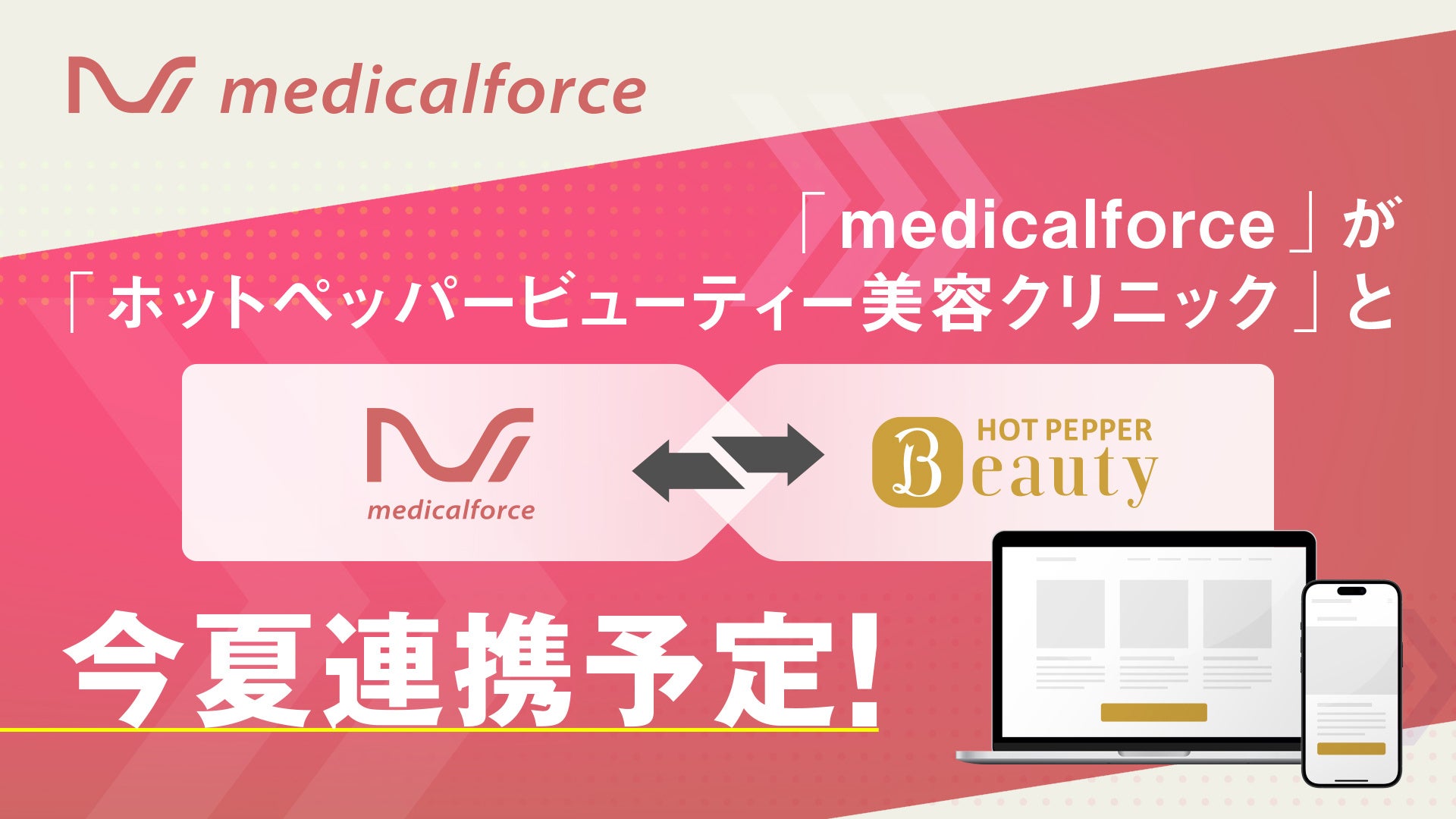 美容クリニック向けクラウド型電子カルテ導入院数No.1※サービス『medicalforce』、『ホットペッパービューティー美容クリニック』と今夏連携予定