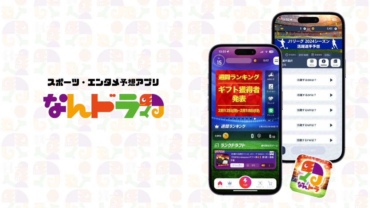 「なんドラ」はアプリケーションを利用し試合の勝敗や特定選手の活躍などを予想するサービスです。 予想結果に応じてポイントを獲得でき、週間ランキング上位ユーザーには様々なギフトをプレゼントしており、全国にいる利用者とランキング勝負を通してスポーツ観戦に新たな観戦価値と熱狂を提供します。