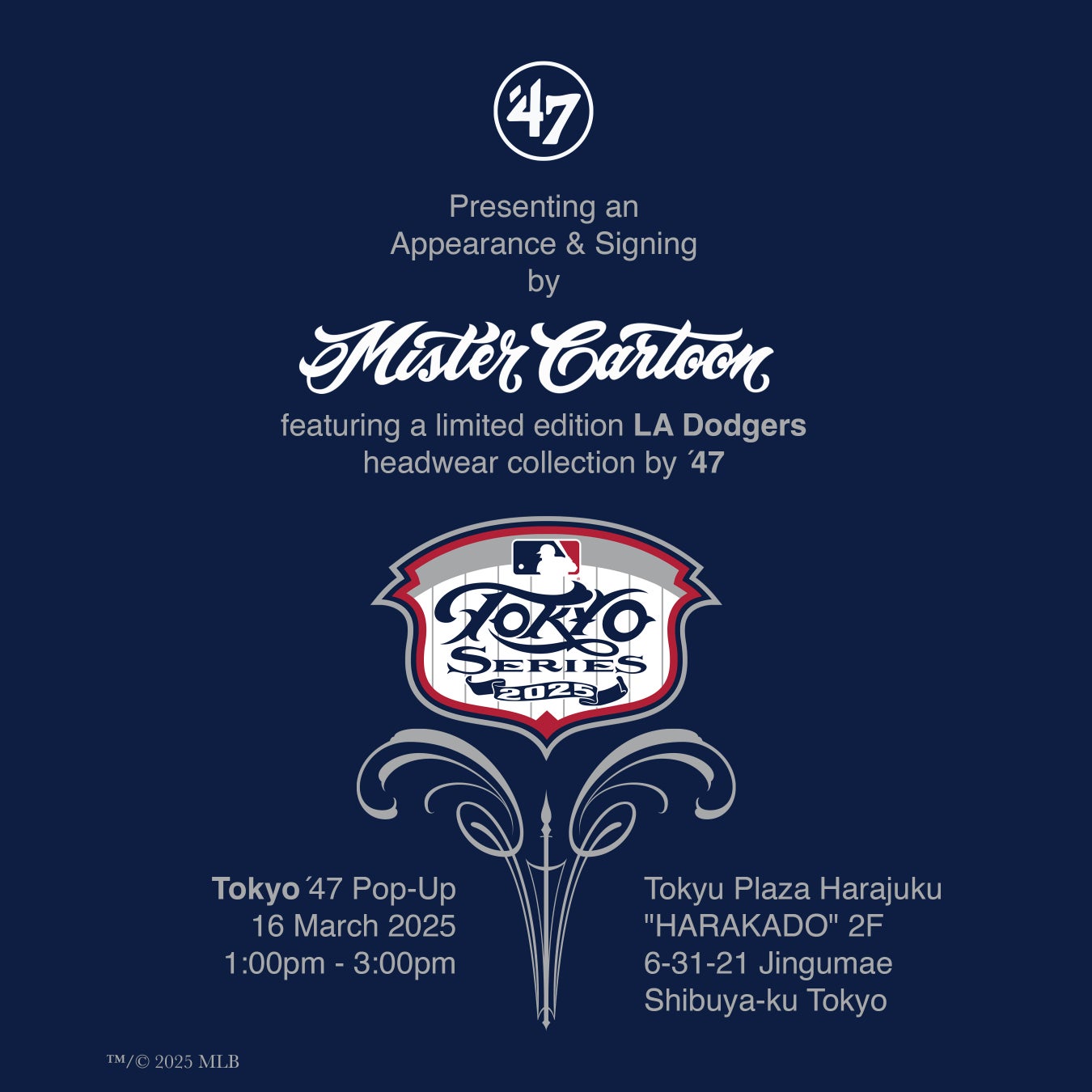 さらには、POP-UP開催期間の3月16日(日)には、なんとMister.Cartoonが登場し、写真撮影・サイン会を開催!! このPOP-UPでしか手に入れることができないコラボレーションモデルと共に、サプライズゲストで本人登場と、『MLB Tokyo Series』にふさわしいスペシャルな機会に、是非足を運んで欲しい。