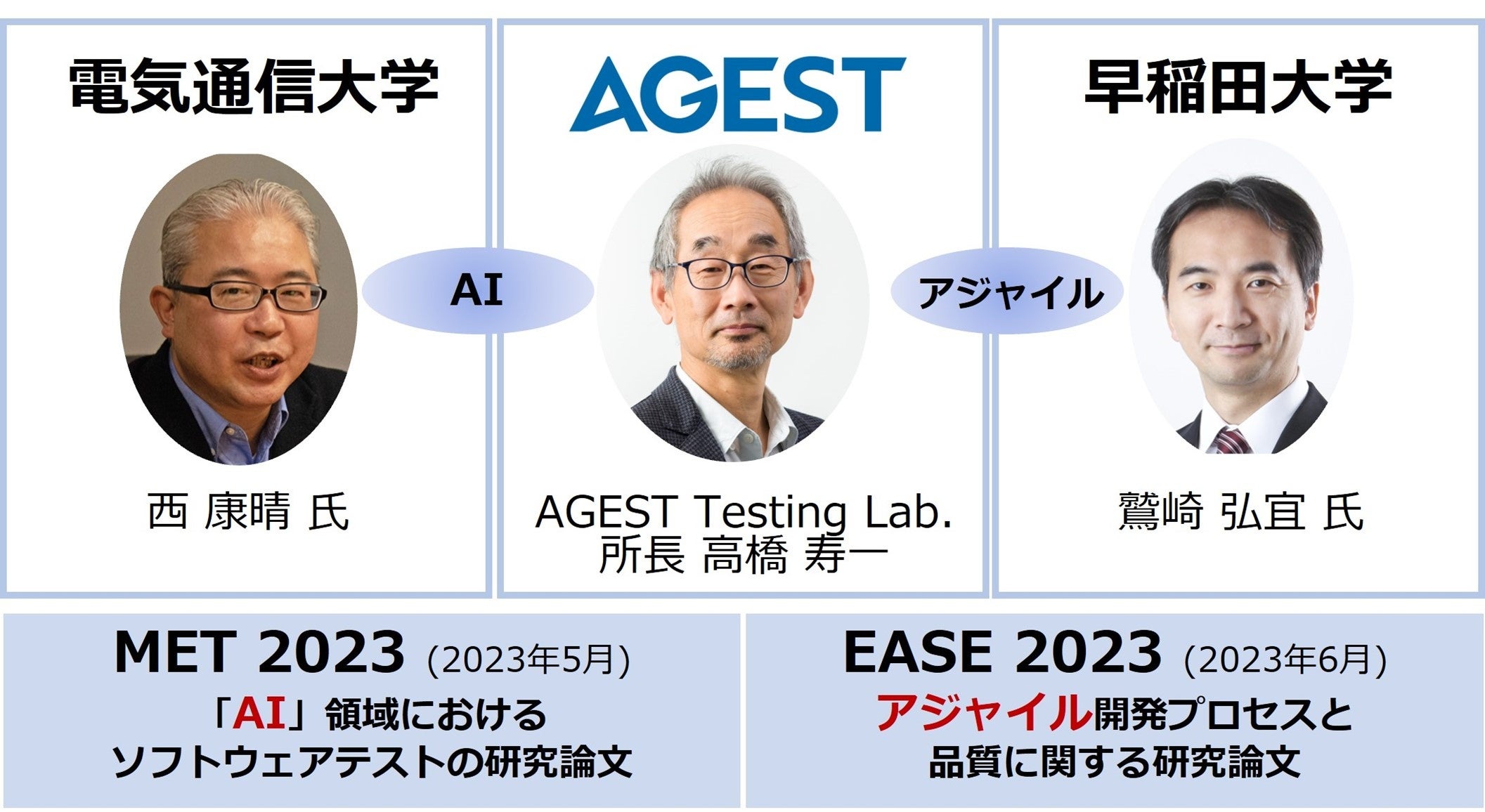 AGEST Testing Lab.と電気通信大学及び早稲田大学との産学連携の研究成果が、AIテストにおける国際学会「MET2023」とソフトウェア分野の国際会議「EASE2023」において論文採択