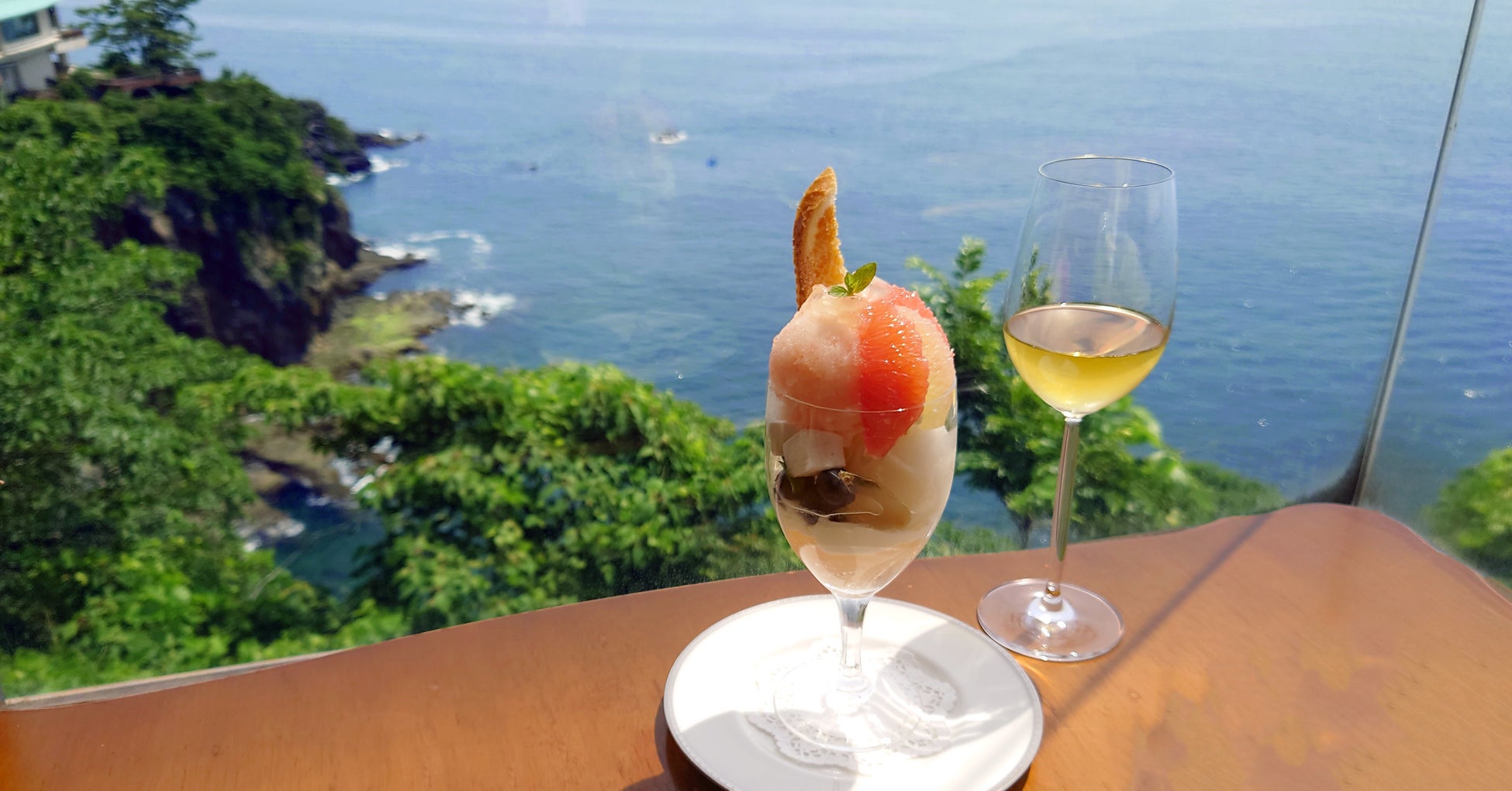 Restaurant&Sweets 花の妖精は、広大な相模灘を見下ろす断崖に建つ「伊豆随一の絶景」と謳われるカフェです。