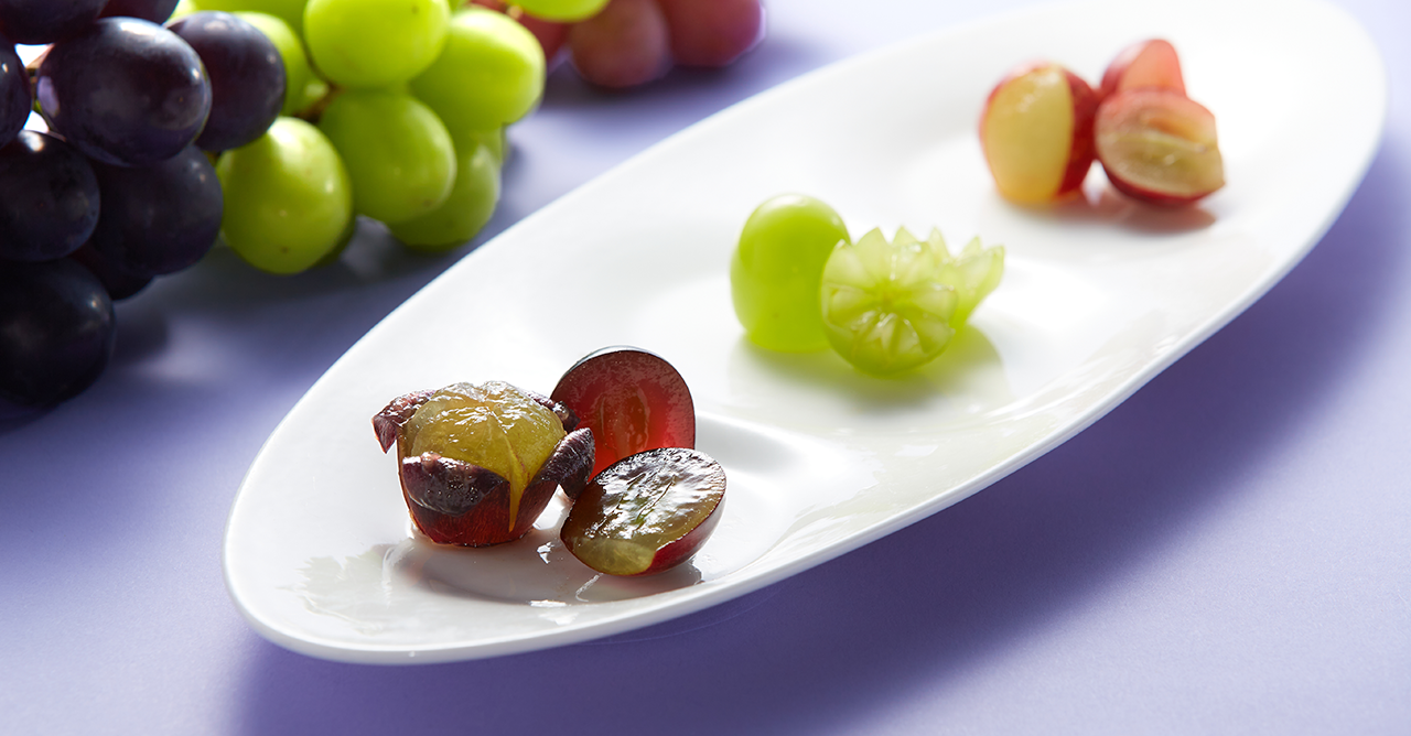 シャインマスカットは高貴な香りと爽やかな甘さが口いっぱいに広がり、皮ごとお召し上がりいただけます。ピオーネの果皮は紫黒色で果粒が大きく、果肉が締まっているのが特徴です。甘みと酸味のバランスがよく、濃厚でしっかりとした味わいです。その他赤系のぶどうなど品種によって味わいや香り、食感が違うので、この機会に食べくらべを体験してみてください。