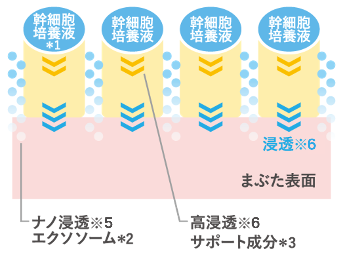 デリケートな目元のことを考えた成分選定と、ヒト幹細胞培養液*1を6%※1配合の独自処方。この高い支持を得た使い心地を、いよいよ全国の皆様へお届けいたします。