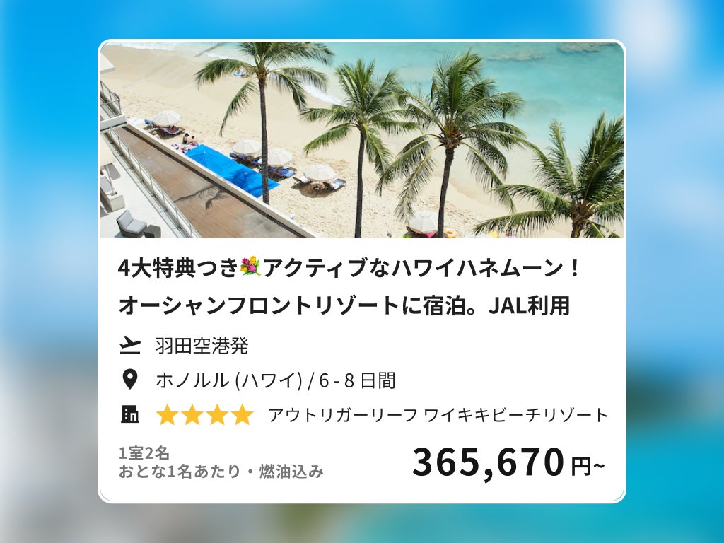 4大特典つき💐アクティブなハワイハネムーン!オーシャンフロントリゾート宿泊