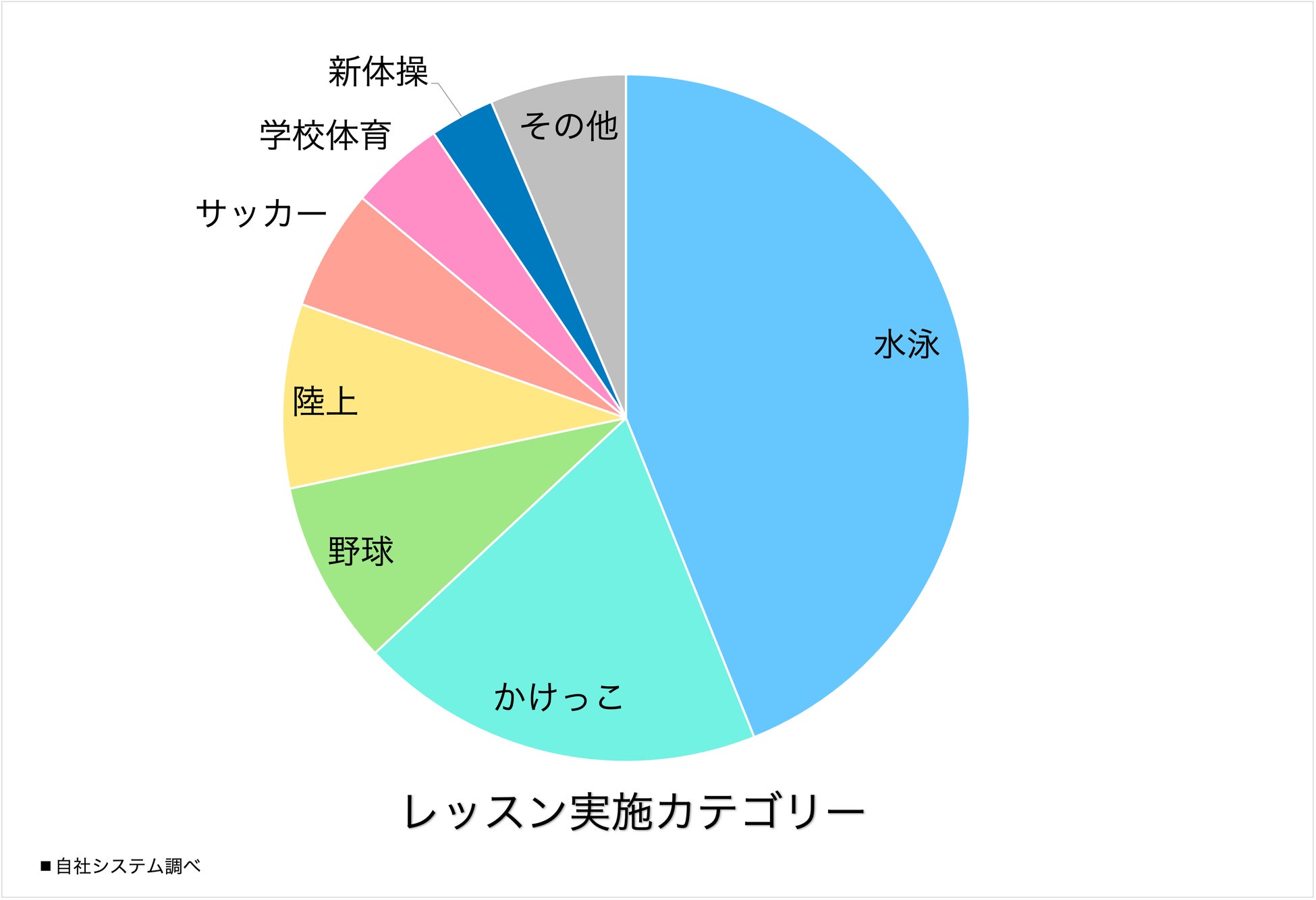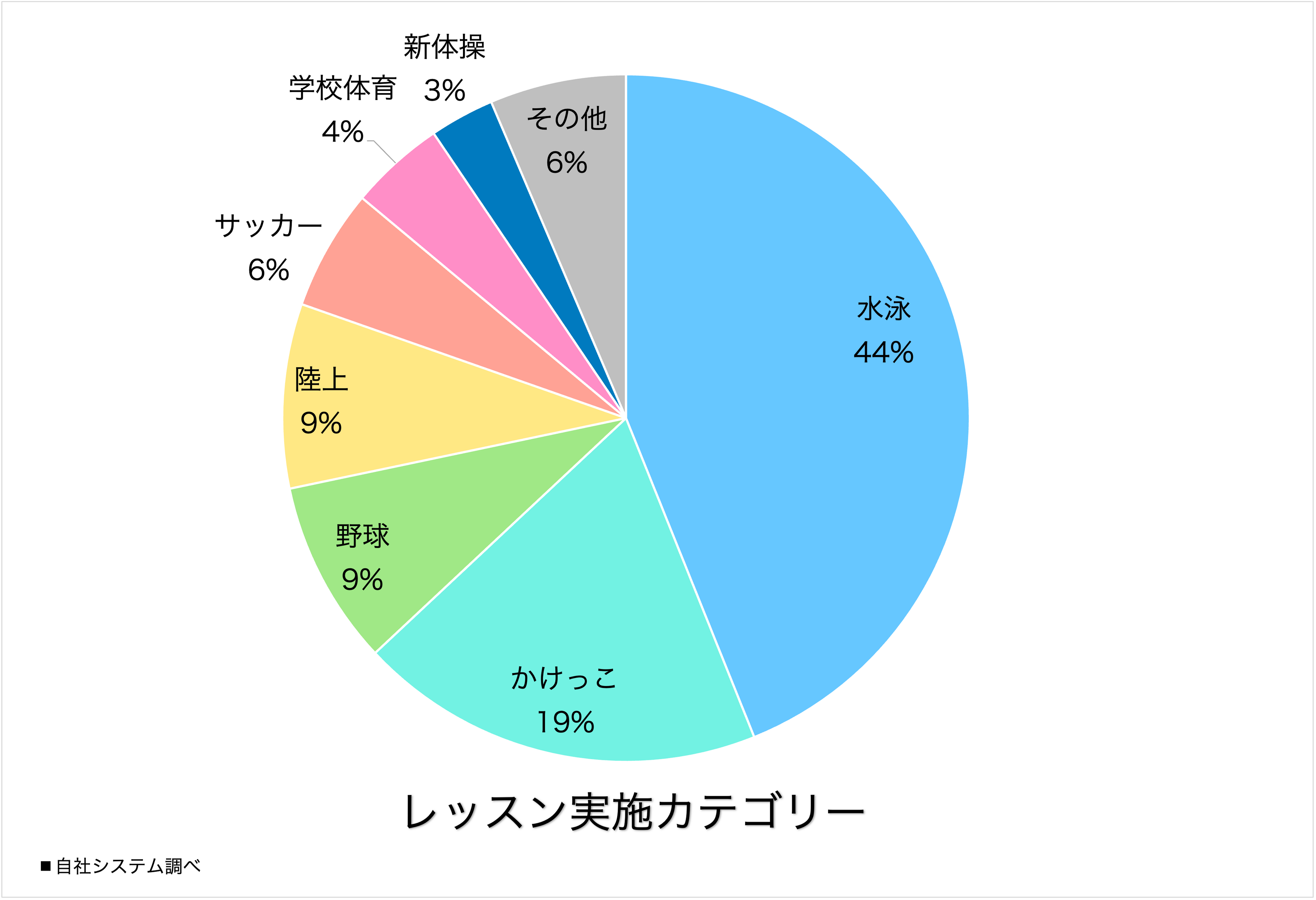 ドリームコーチングで人気の競技は、水泳・かけっこ・野球・陸上・サッカー・学校体育・新体操の順となっています。ドリームコーチングは1回限りのトレーニングも提供していますが、水泳、かけっこ、野球、陸上などの人気スポーツでは、定期的な利用が増えています。