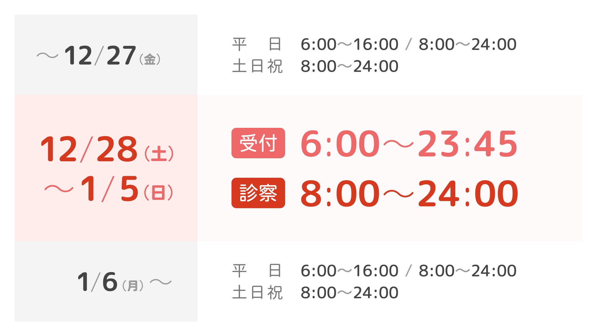 そんななか年末年始は休診に入るクリニックが多く、普段受診しているかかりつけ医を受診できない方がほとんどです。また年末年始は帰省や旅行を予定していて、慣れない土地での受診先が分からず不安という方もいらっしゃるかと存じます。