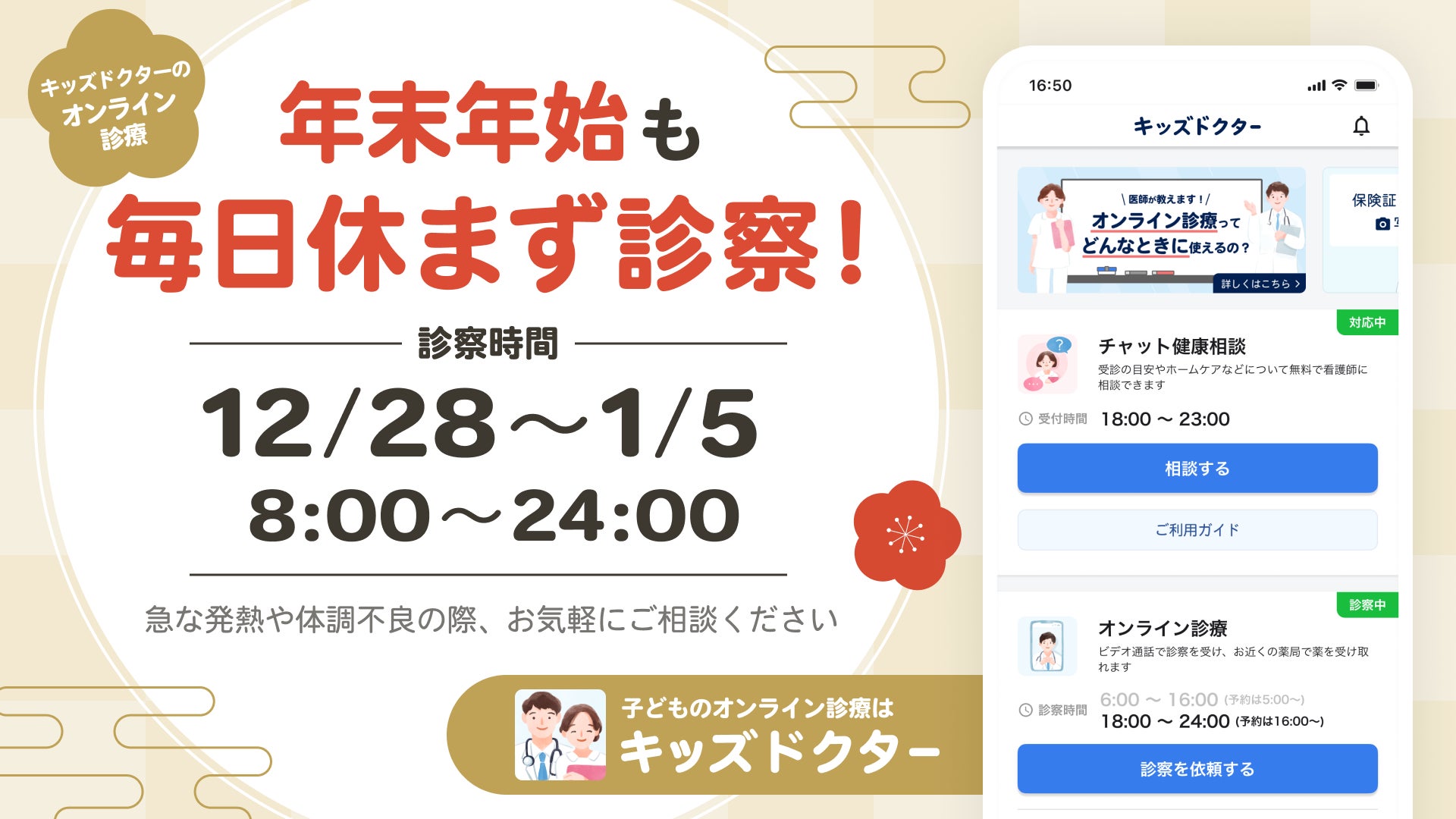 子どものオンライン診療アプリ「キッズドクター」は年末年始も毎日休まず診察します!