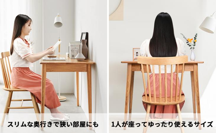 天板の四角を丸く加工され、デスクトップも鋭いエッジのない滑らかで繊細な仕上げにし、子供がいる家でもご心配なく利用いただけます