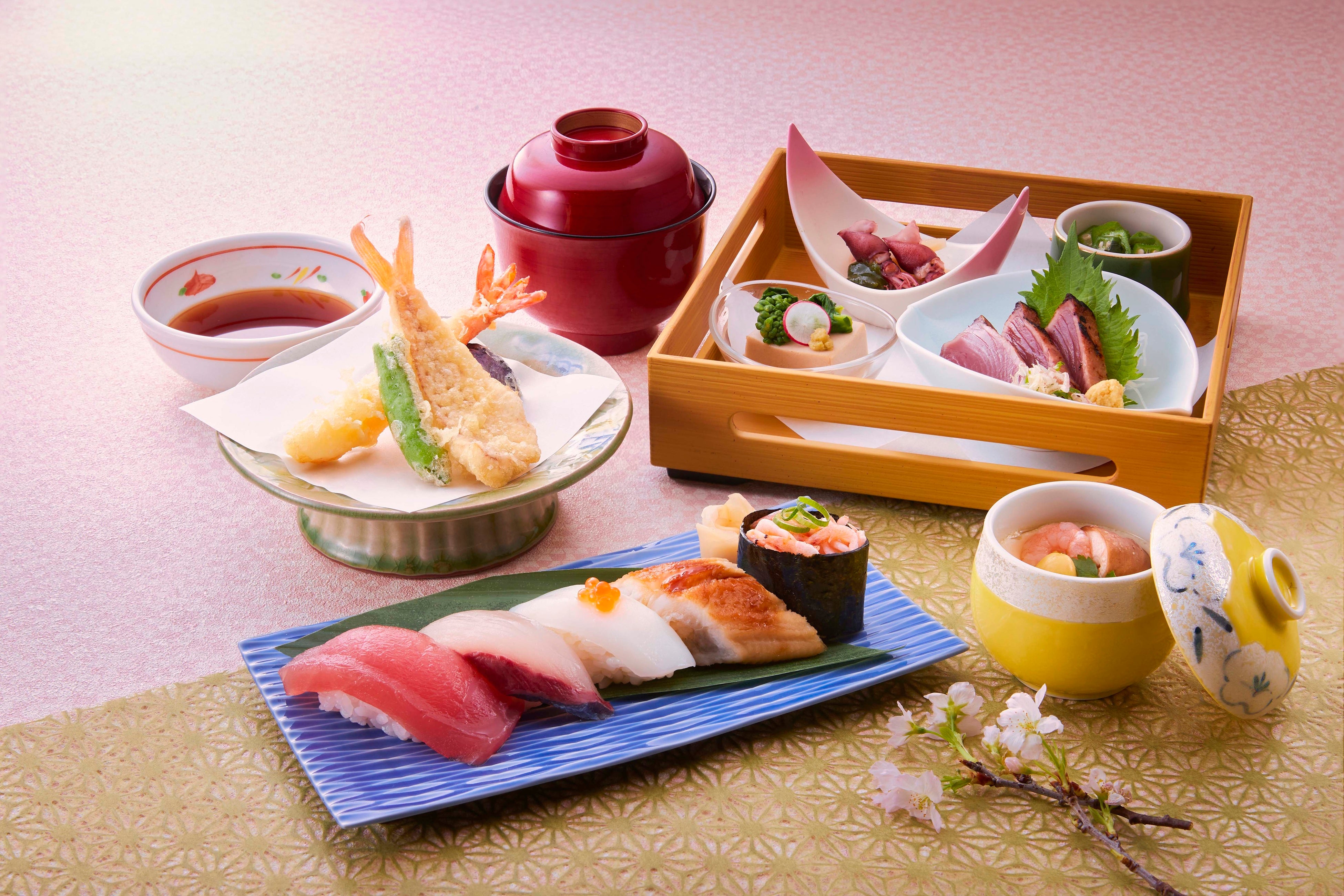 ◇いとより鯛と海老の天ぷら ◇茶碗蒸し ◇汁物 ◇デザート