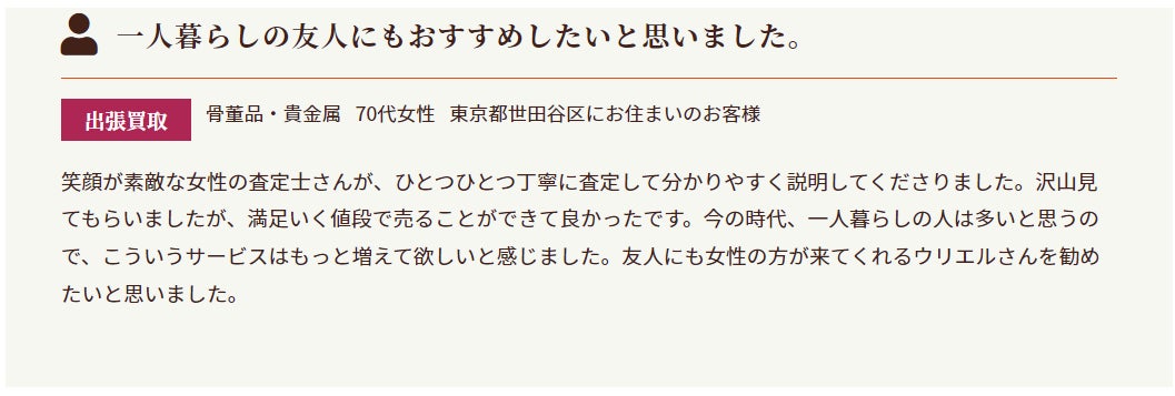 「出張買取は不安がつきもの…」そんな女性のお客様の声をもとに誕生!