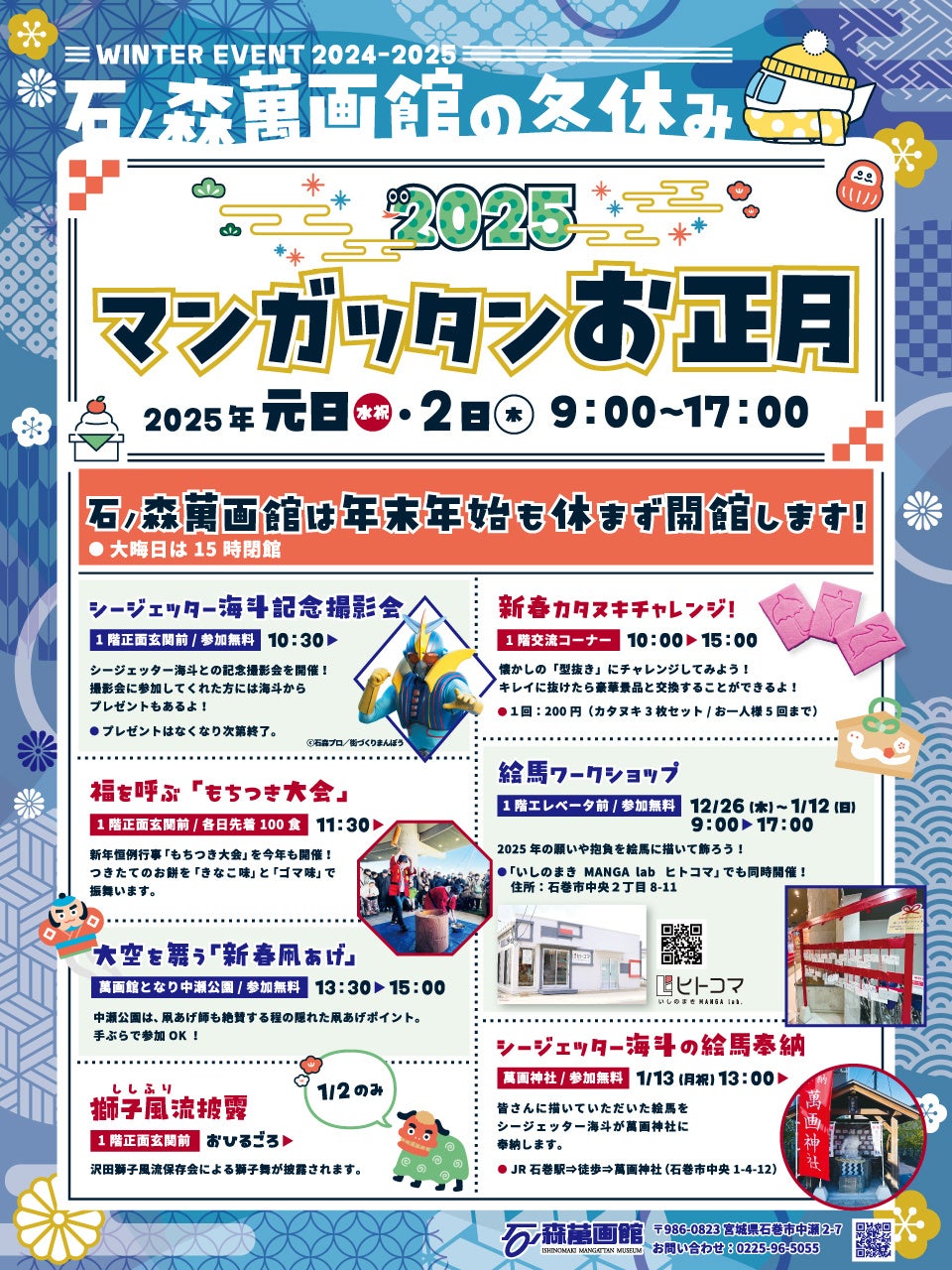 【石ノ森萬画館:宮城県石巻市】石ノ森萬画館では年末年始も休まず開館&正月イベントを開催します!!