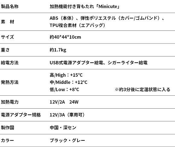 ドイツ発!加熱機能搭載の背もたれ「Minicute」腰の疲れを常にケア。