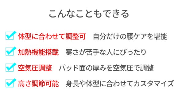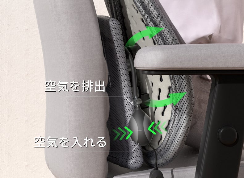 ・空気圧調整によって、体形に合わせて心地良い姿勢をサポート