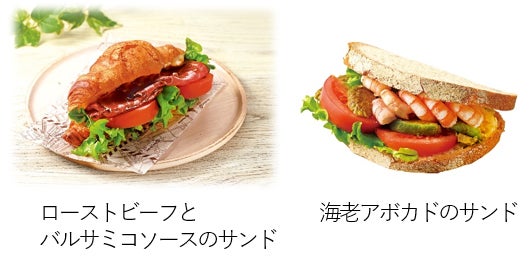ローストビーフやサーモン、エビなどのメイン具材と彩りの良い野菜をサンドしました。具材がたっぷりで、食べ応え抜群です。