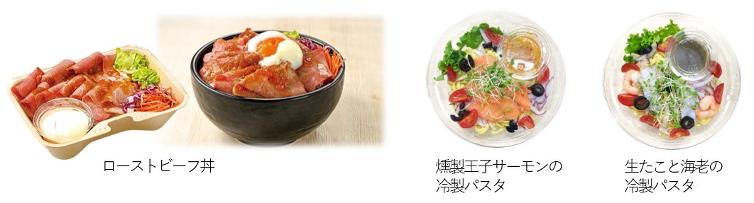 パスタでは、タコ・サーモン・エビなど海産物を使⽤し、食べ応えのある商品に仕上げています。