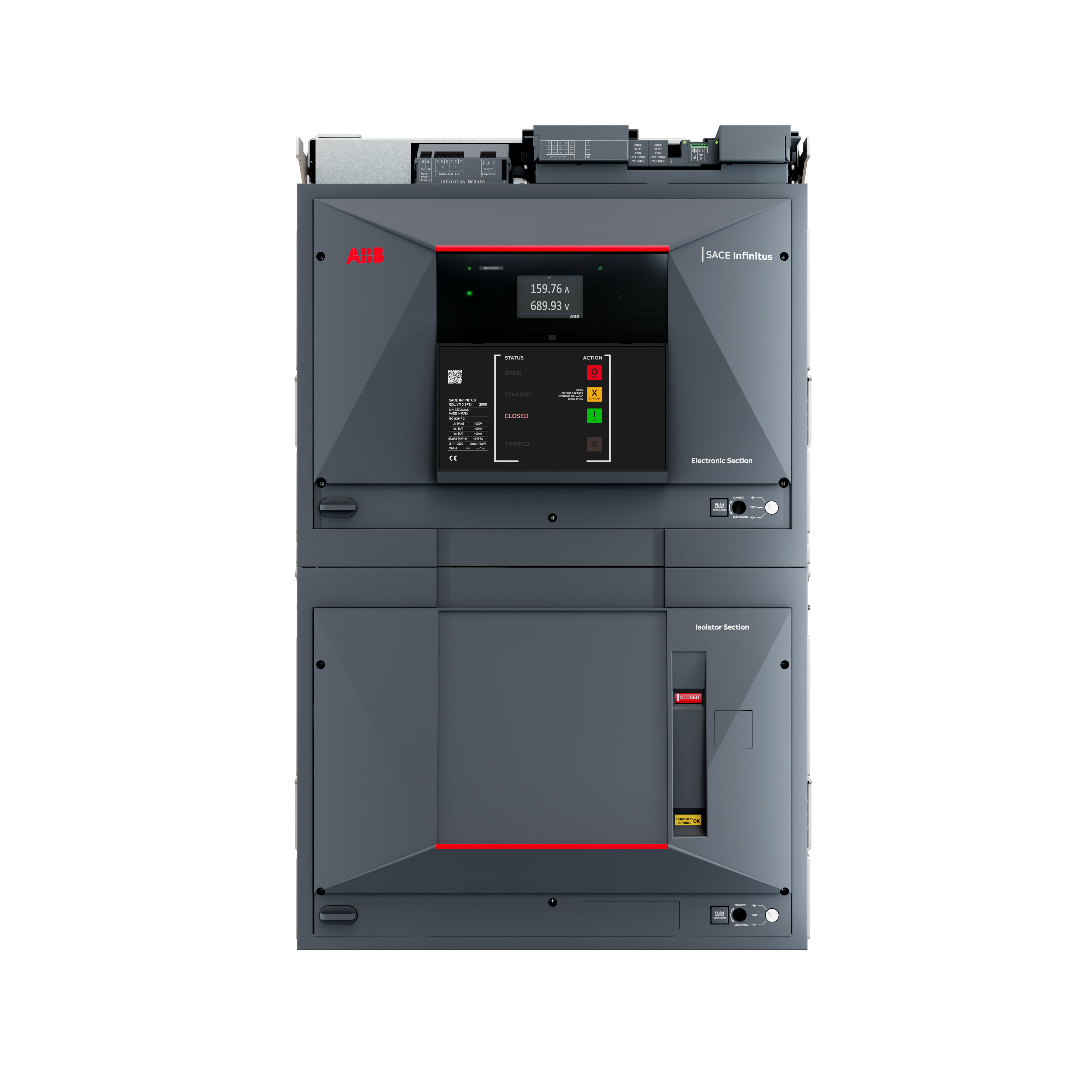 ABBのSACE Infinitusは、パワーエレクトロニクスを使用して、短絡故障時に瞬時に遮断します。その速度は、従来の機械式遮断器に比べて100倍以上高速です。