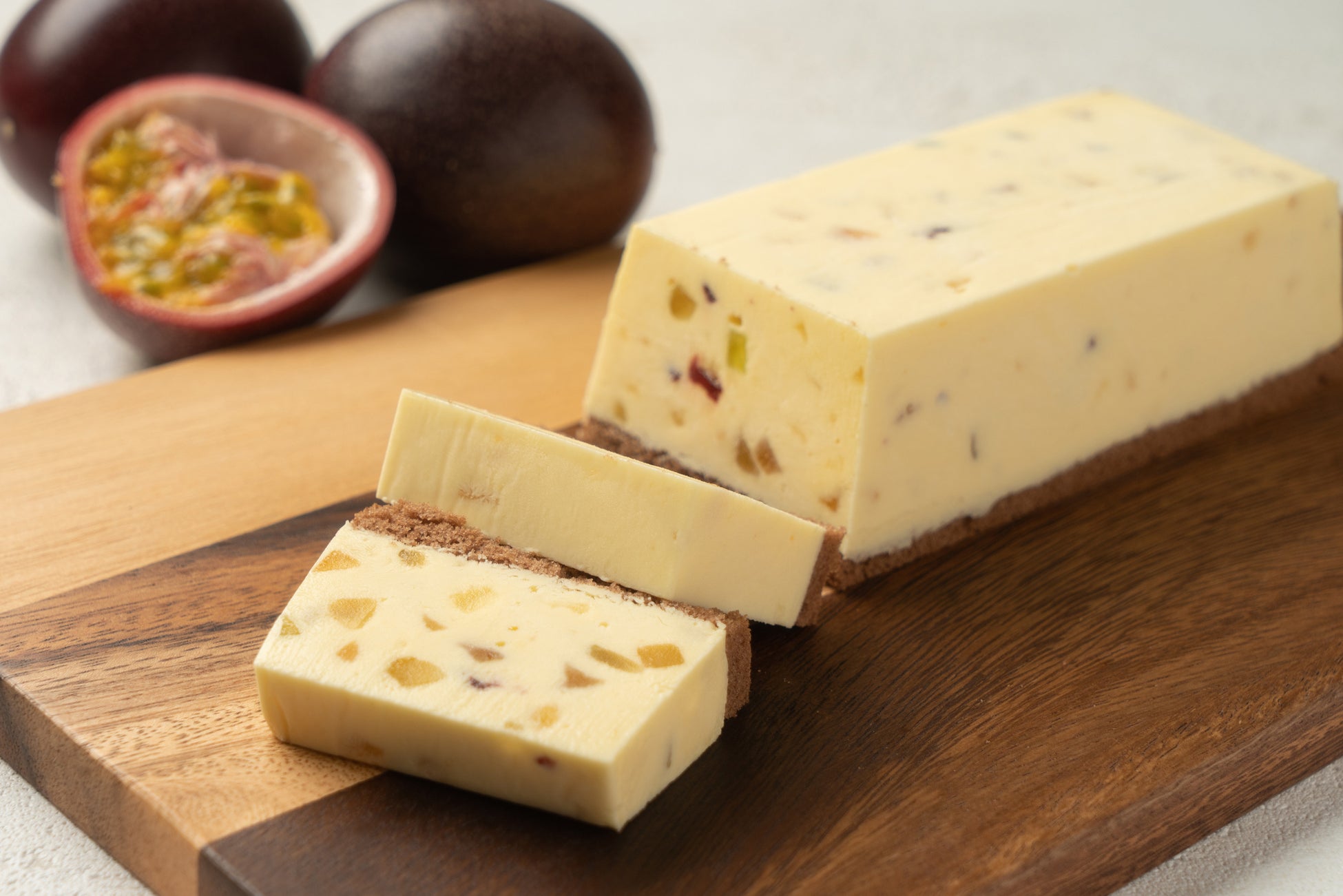 パッションピューレとマンゴーピューレを混ぜ込んだ生地に、シトロンやパインなどのフルーツをたっぷりと加えたフルーティーなカッサータ。※本商品は数量限定での販売となります。