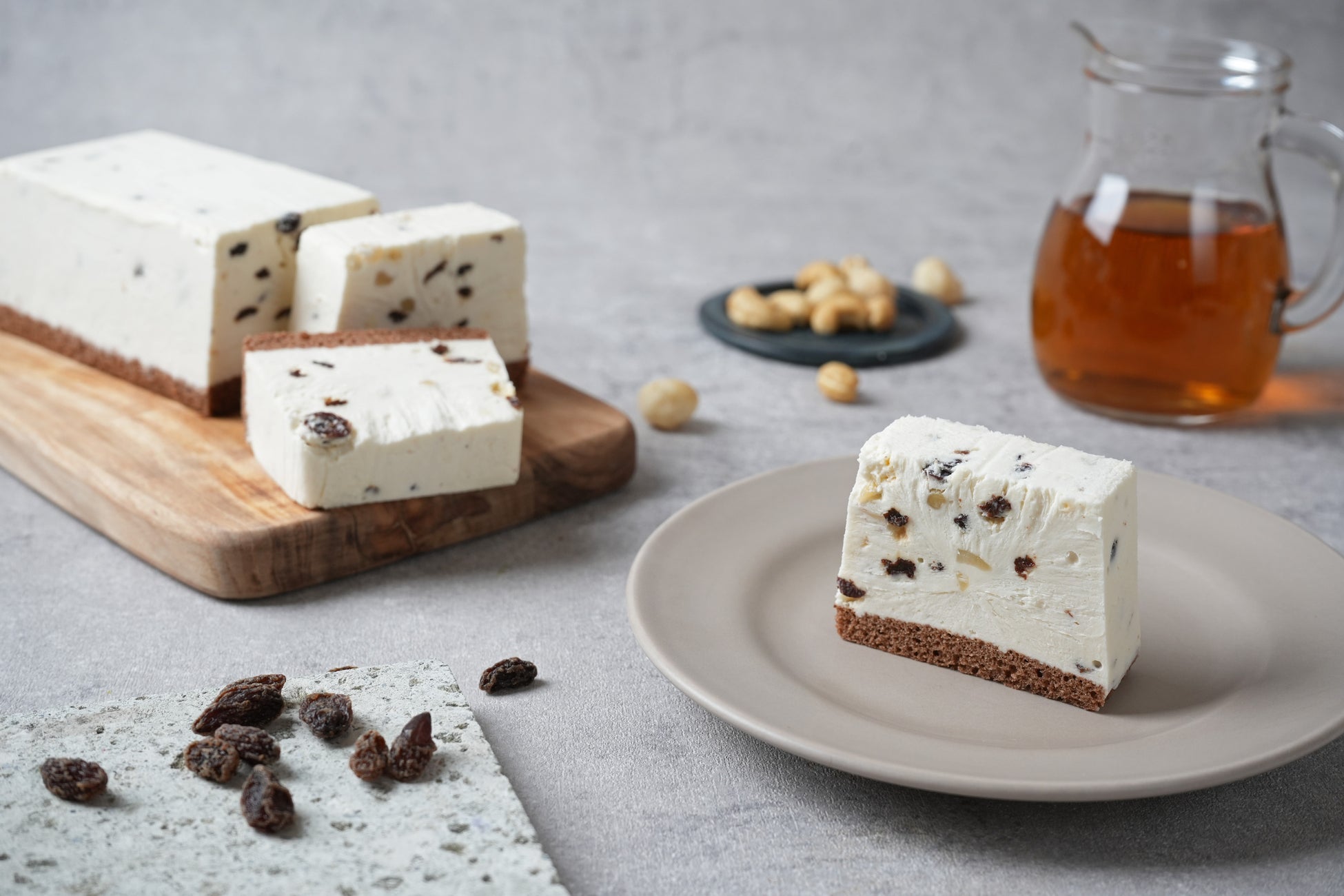 最高級ラムの代名詞「ディロントレヴューラム」を贅沢に混ぜ込んだラムレーズンのカッサータ。