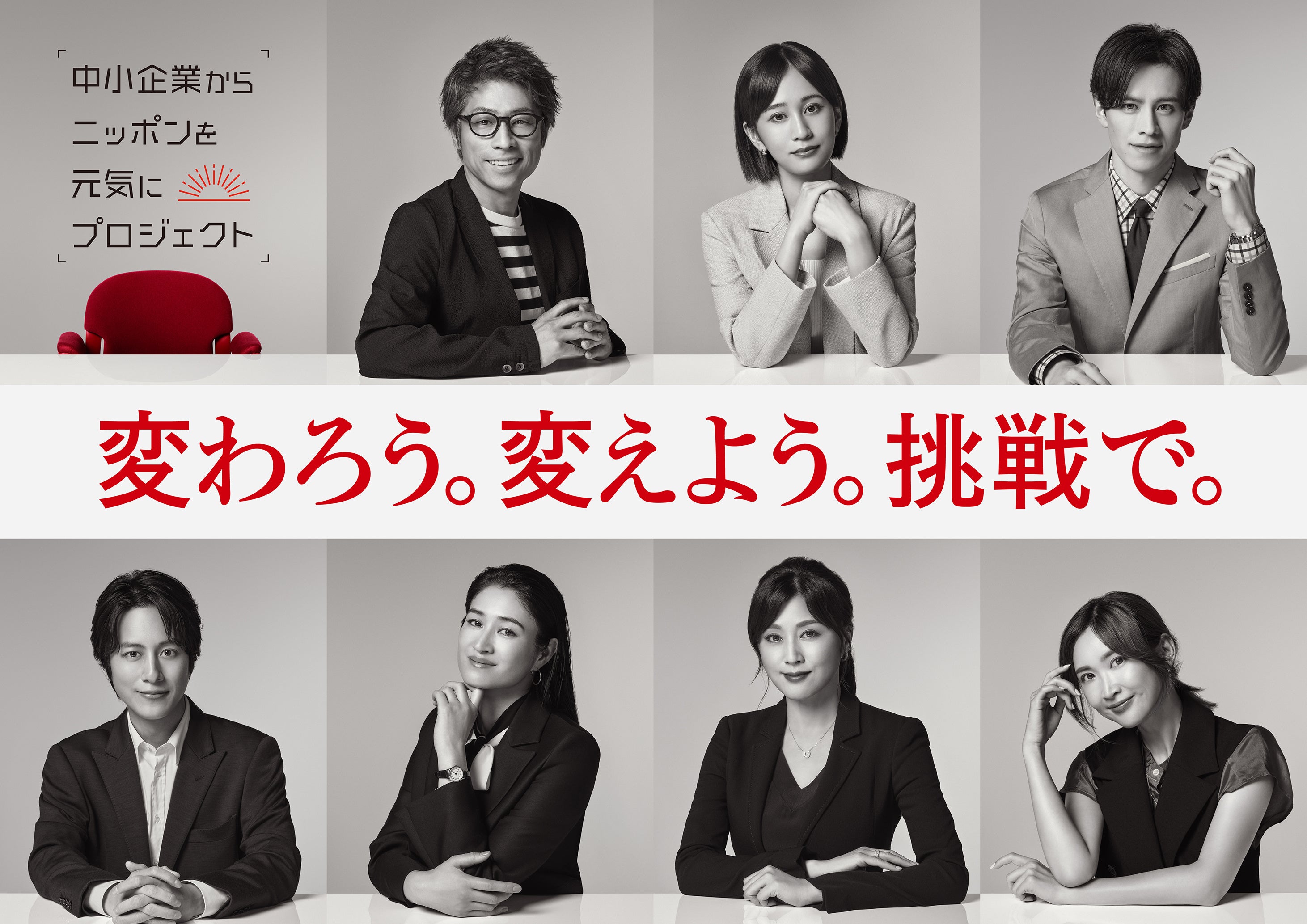 本プロジェクトでは「変わろう。変えよう。挑戦で。」をビジョンに掲げ、公式アンバサダーとともに、 参画いただいた中小企業の情報発信力・PR力の強化、働く社員のモチベーション向上の機会創出、SDGs推進活動など全方位的なサポート(*)を行っています。中小企業が日々求められる変化に対して”挑戦”していくことこそが、未来を創り出す大きな一歩となると考え、プロジェクトに参画いただく中小企業の方々、公式アンバサダーの方々と共に、日本活性化の皮切りになることを目指して参ります。