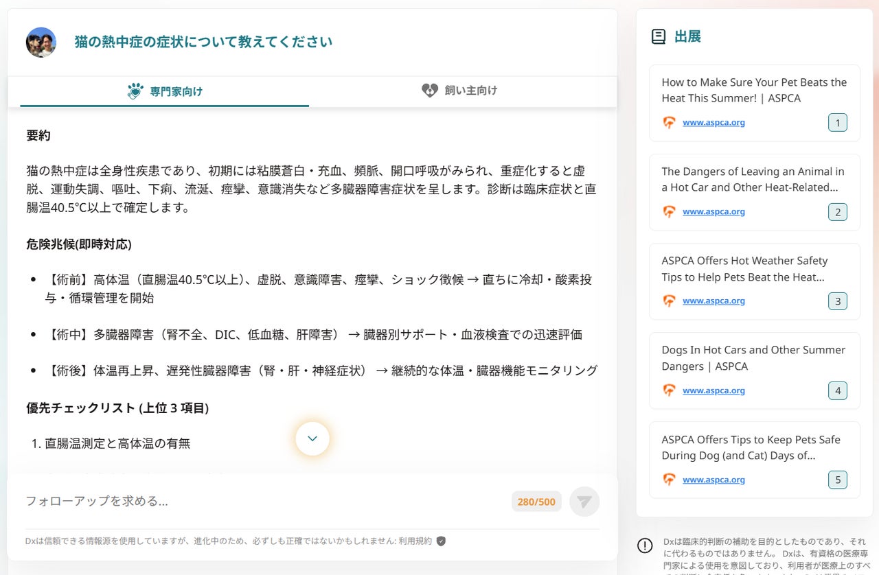 ※Vets Ask AIは臨床的判断の補助を目的としたものであり、臨床判断を置き換えるものではありません
