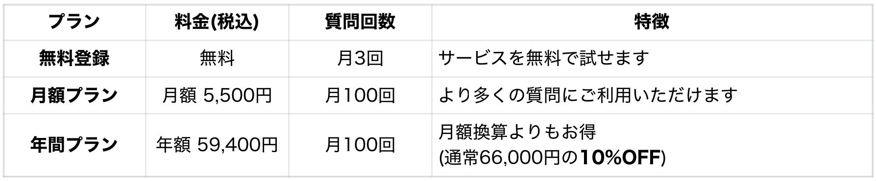 なお、有料プランの質問回数はご登録日の翌月同日にリセット(例:10月5日登録の場合、11月5日にリセット)されます。(無料プランは毎月1日にリセットされます)