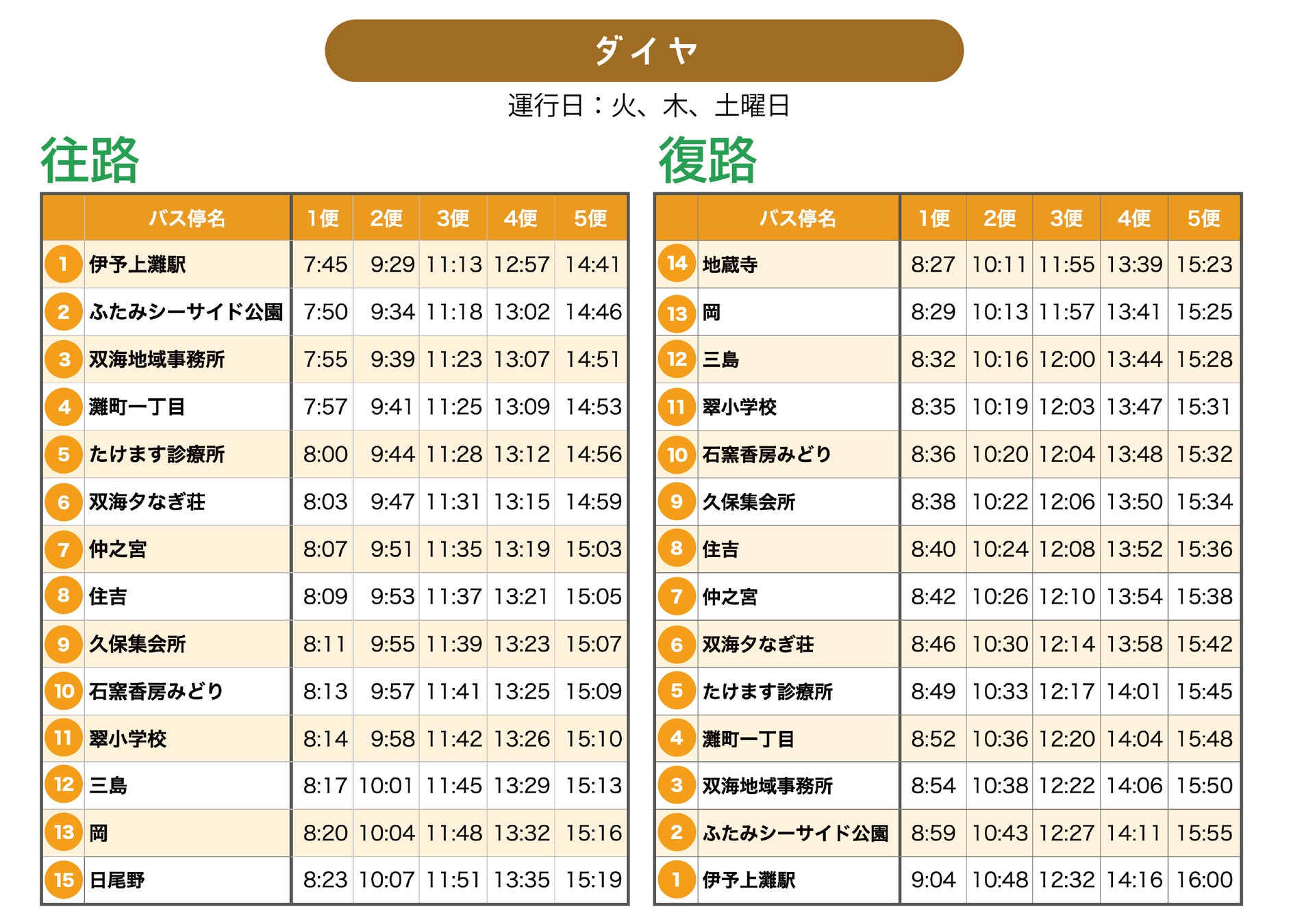 ・運行本数:5便/日