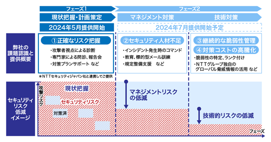 サプライチェーン全体の早期のセキュリティ対策の実現をご支援するため、お客さまの課題・要望に即した「マネジメント対策」、「技術対策」の提供を2024年7月に予定しています。