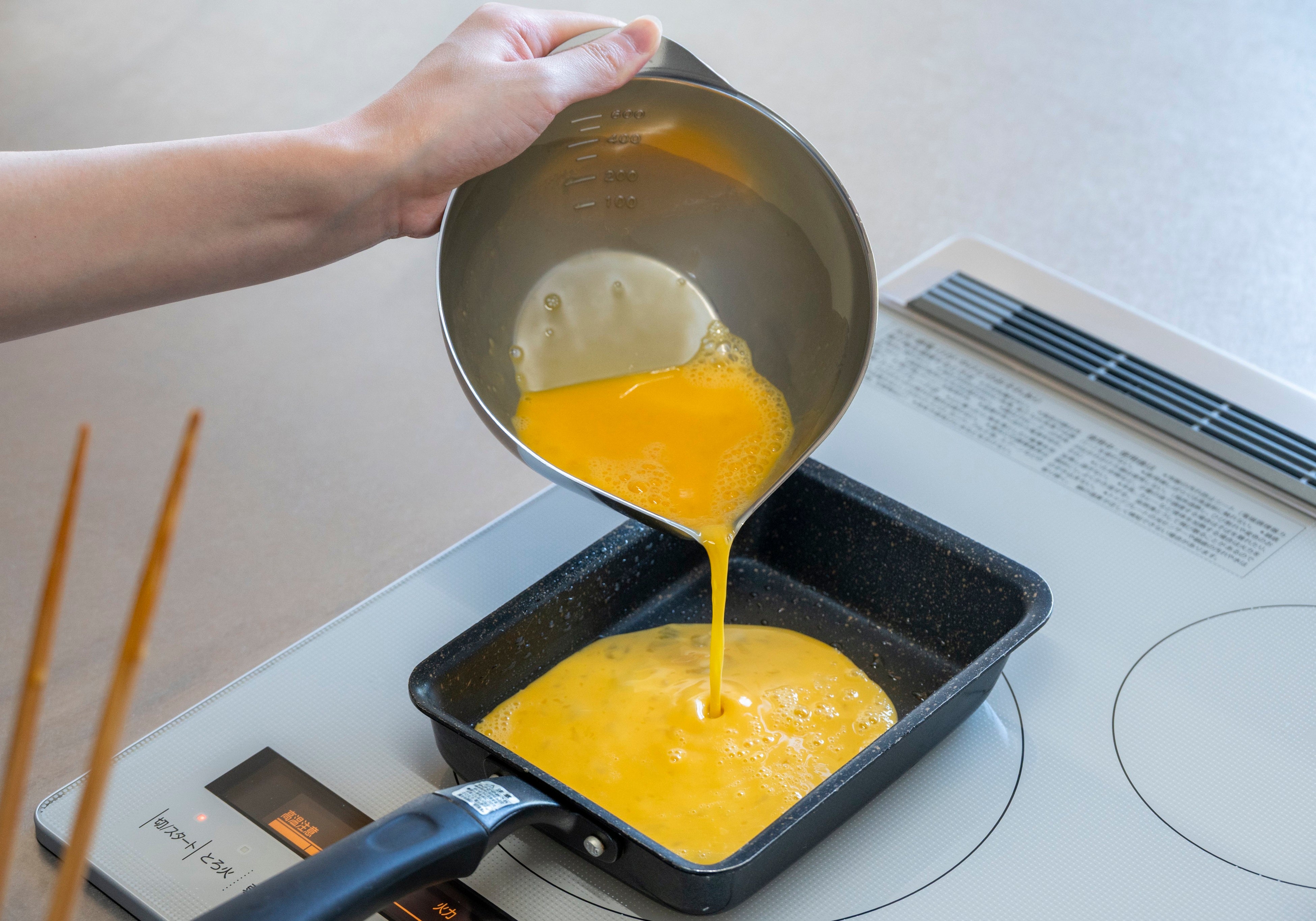そんな悩みを「すっきり暮らすキレッキレボウル」が解決します。 液だれしにくく、調理台を汚さず、拭き掃除の手間も省けます。 卵3〜5個がちょうどよく混ぜられる深さで、お弁当に欠かせない玉子焼きづくりも卵液を垂らさず快適に調理ができます。