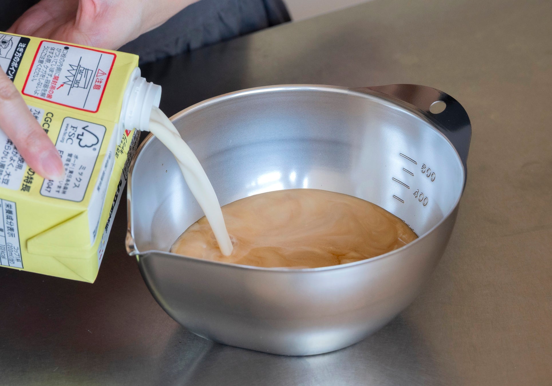 さらに15cmサイズの登場により、ゼリーやプリンなどのデザート作りでは、混ぜ合わせから注ぎ入れまでを一つのボウルで完結。お玉やスプーンを使う必要がなく、洗い物も減らせます。