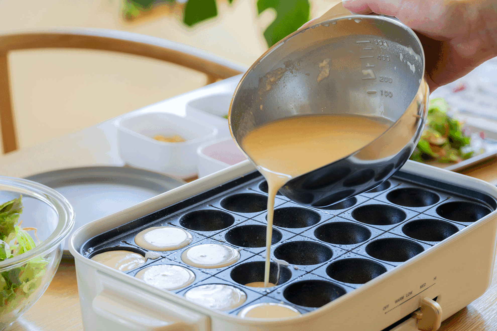 一般的なボウルの注ぎ口は1段階の突き出しが多いですが、当製品はキレの良さにこだわり、突き出しを2段階に折り曲げた独自形状を採用。液体が注ぎ終わったあとに自然とボウル内へ戻りやすく、注ぎ口に液が残りにくいため、液だれを防止。特に玉子焼きやたこ焼きなど、液体を複数回注ぎ入れる場面でもスッと切れて、調理中のストレスを軽減します。