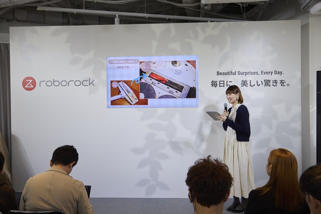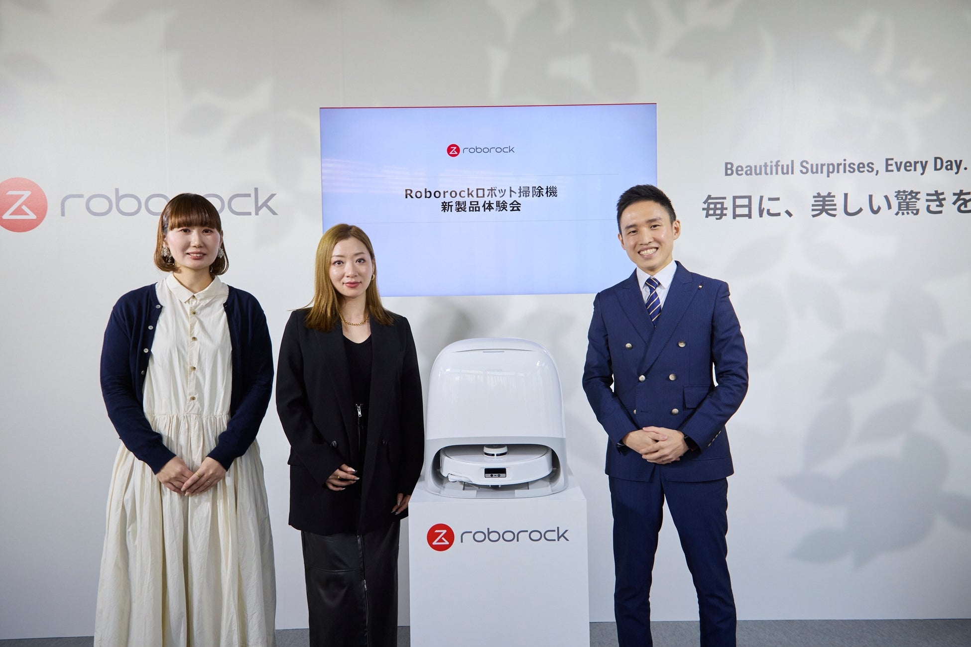 新製品体験会では、同社の担当者より、日本における同社のこれまでの展開と実績をご紹介するとともに、日本市場の潜在力への期待と、今後の展望についてお話いたしました。続けて『Qrevo Curv』の主な機能や特長をご説明したのち、2年以上Roborockの掃除機を愛用している家事系インフルエンサーのおさよさんにゲストとしてご登壇いただき、新製品の魅力を語っていただきました。会の後半では、メディア関係者の皆様にも製品に触れていただき、Roborockの最新技術をご体感いただきました。