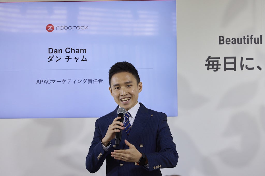 冒頭では、同社のAPACマーケティング責任者、Dan Cham(ダン・チャム)より、2024年までの日本市場における展開について「日本市場に参入を開始してから現在まで、我々は日本市場で合計20種類以上の製品を発売してまいりました。8月に発売されたフラッグシップモデルの『Roborock S8 MaxV Ultra』は、市場で高い評価を受けただけでなく、2024年にメディアの皆様が主催されるアワードにおいて賞を受賞する等、高く評価をいただきました」と話しました。