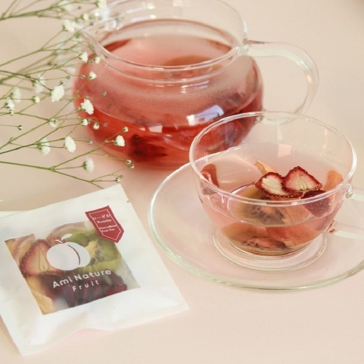 フルーツティーは、山梨県でフルーツを生産するAminatureが作ります。甘いパンとよく合う、爽やかな酸味が特長の「国産果実のフルーツティー ローゼル」をお付けします。