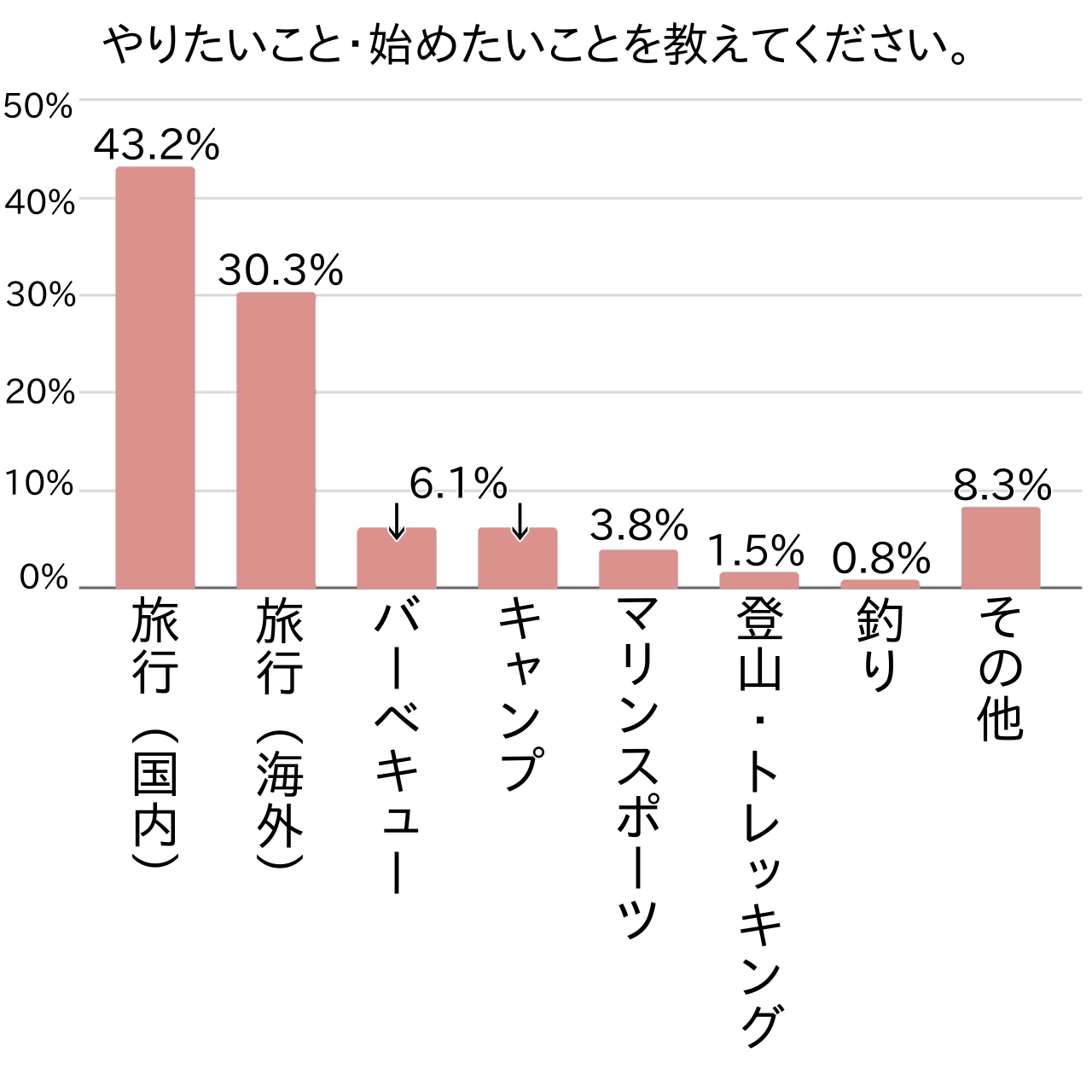 コロナ禍が落ち着いてきたいま、もちろん感染症防止対策には気をつけることが前提ですが、それまでなかなかできなかった趣味・レジャー等を楽しみたいという思いを持っている方が非常に多いことが分かりました。
