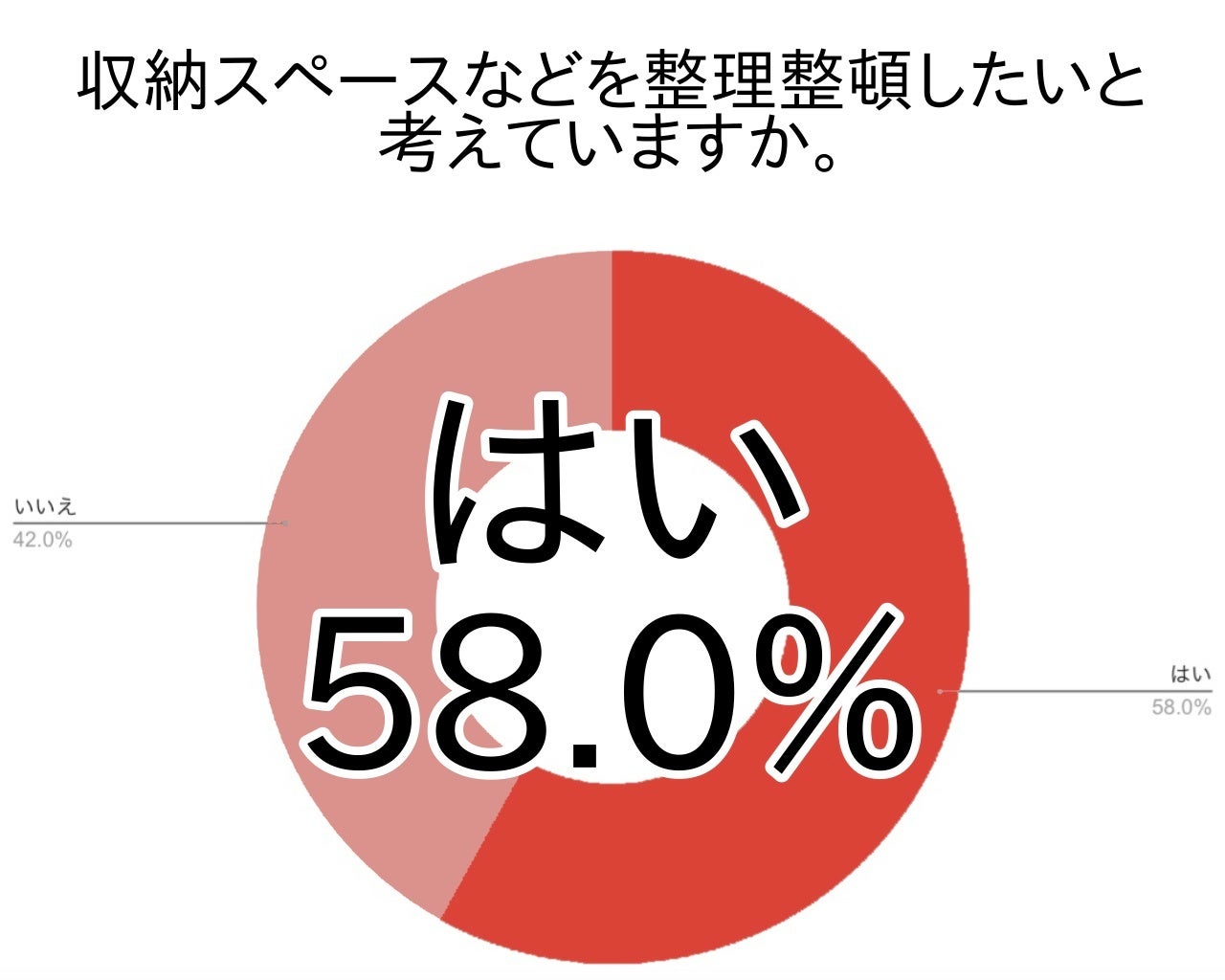やりたいこと・始めたいことのために新しいものを増やしたい時、まずは既存の荷物を整理整頓して新しいものの収納場所を捻出する方法があります。アンケートでは、収納に関して整理整頓をしたいと考えているか尋ねました。