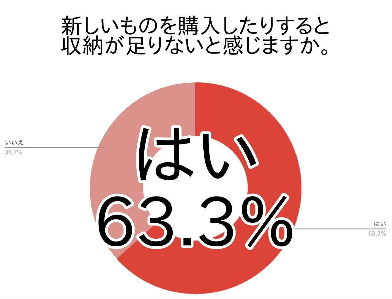 新しくものを購入すると自宅内の荷物が増えますが、アンケートでは、新しいものを購入したりすると、収納が足りないと感じるかを尋ねました。