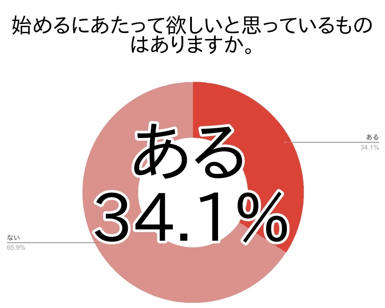 アンケートではやりたいことを始めるにあたって欲しいものがあると答えた方が約3割でした(関東34.1%・全国34.5%)。