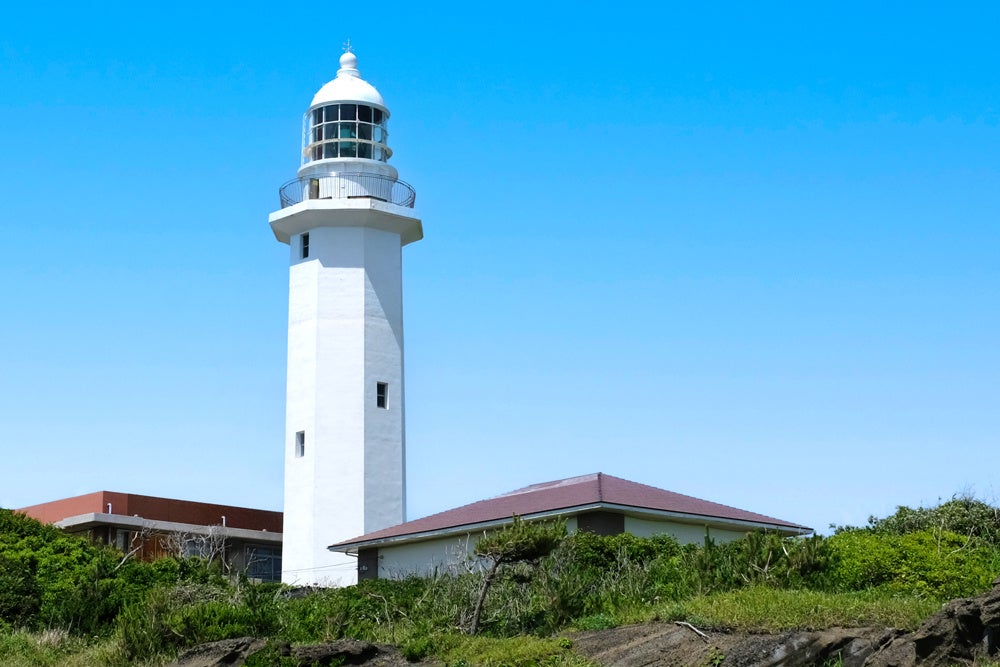 野島埼灯台は、フランソワ・レオンス・ヴェルニーによって、1869年に房総半島の最南端に建てられました。白色の八角形のレンガ造りの灯台として完成しましたが、1923年の関東大震災で倒壊。その後、1925年に現在の鉄筋コンクリート製の八角形の白亜の灯台が再建されました。現存する灯台としては、観音埼灯台に次ぐ古さを誇ります。