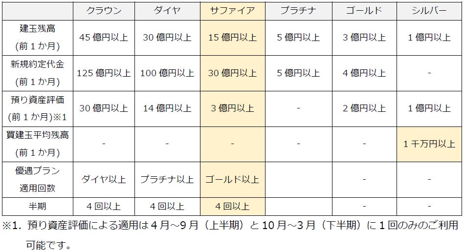ダイヤモンドプランとプラチナプランの間に、優遇コース (サファイアプラン) を新設します。