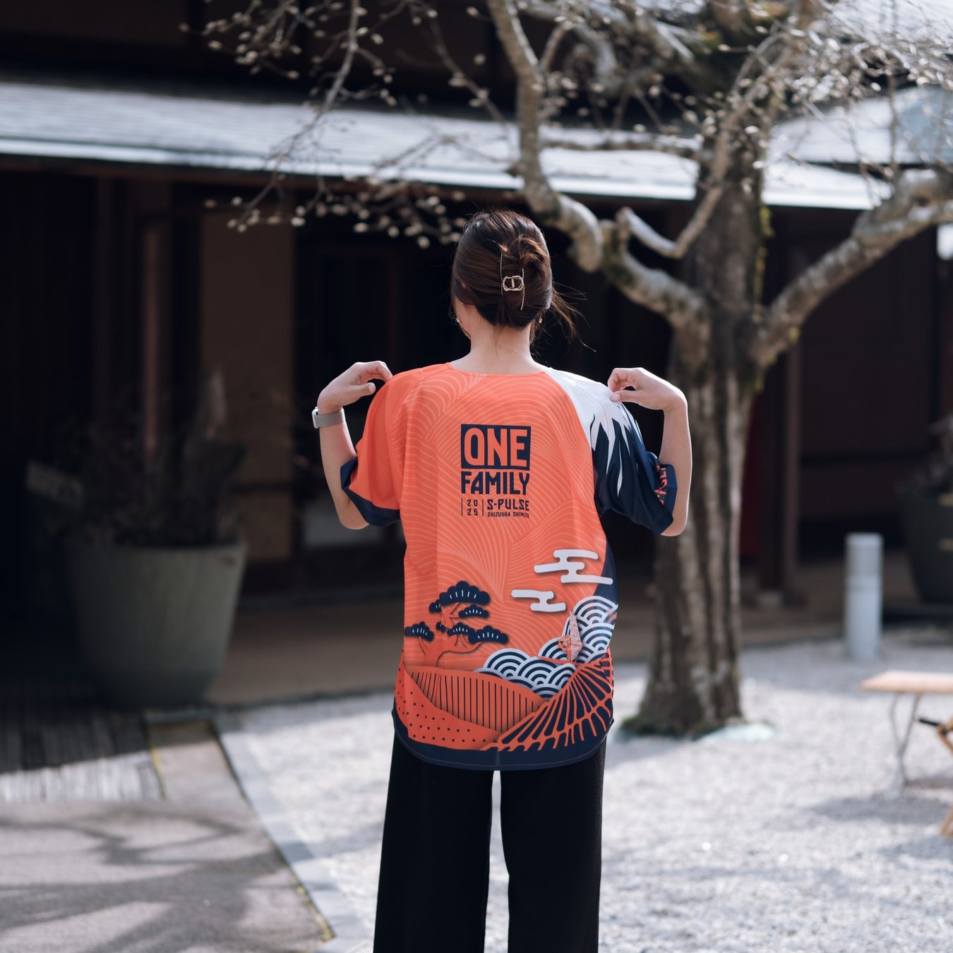 頂点を目指し躍進する選手たちへ、その手を掲げてエールを送るサポーターの右腕に「日本一」の 富士山を。日本の伝統的な柄を取り入れ、エスパルスのホームである三保を胸と背に、革新的な表 現であらわす「日本一」深い駿河湾を掲げて。身にまとった「静岡」で、過酷な戦いに身を投じる選手たちに勝利を掴む力を。